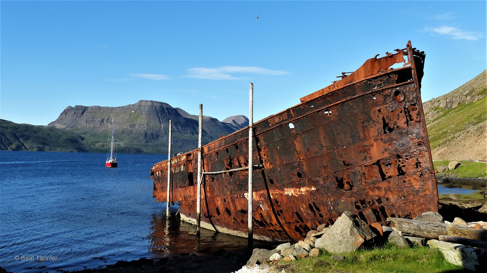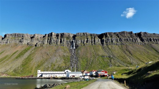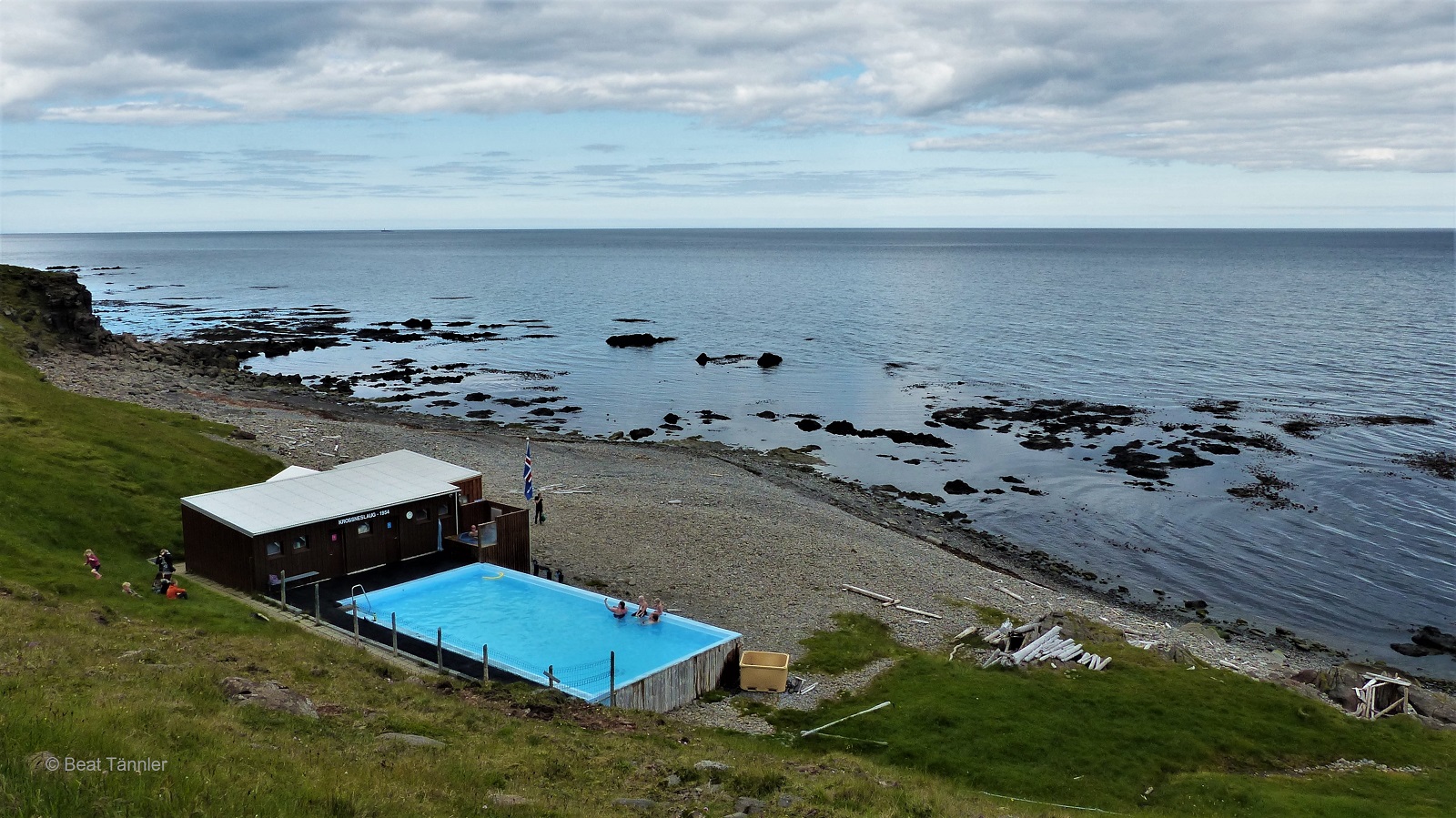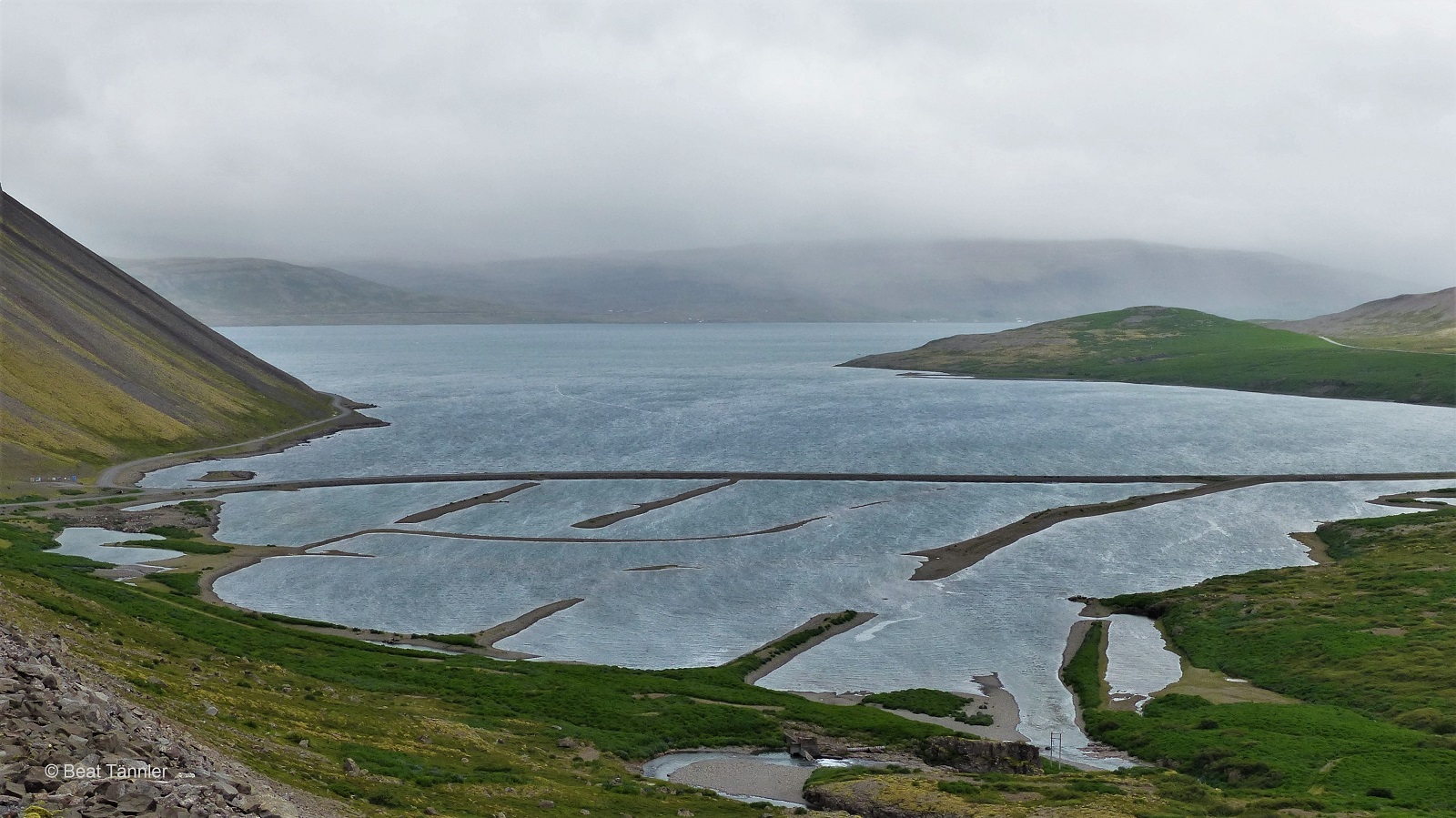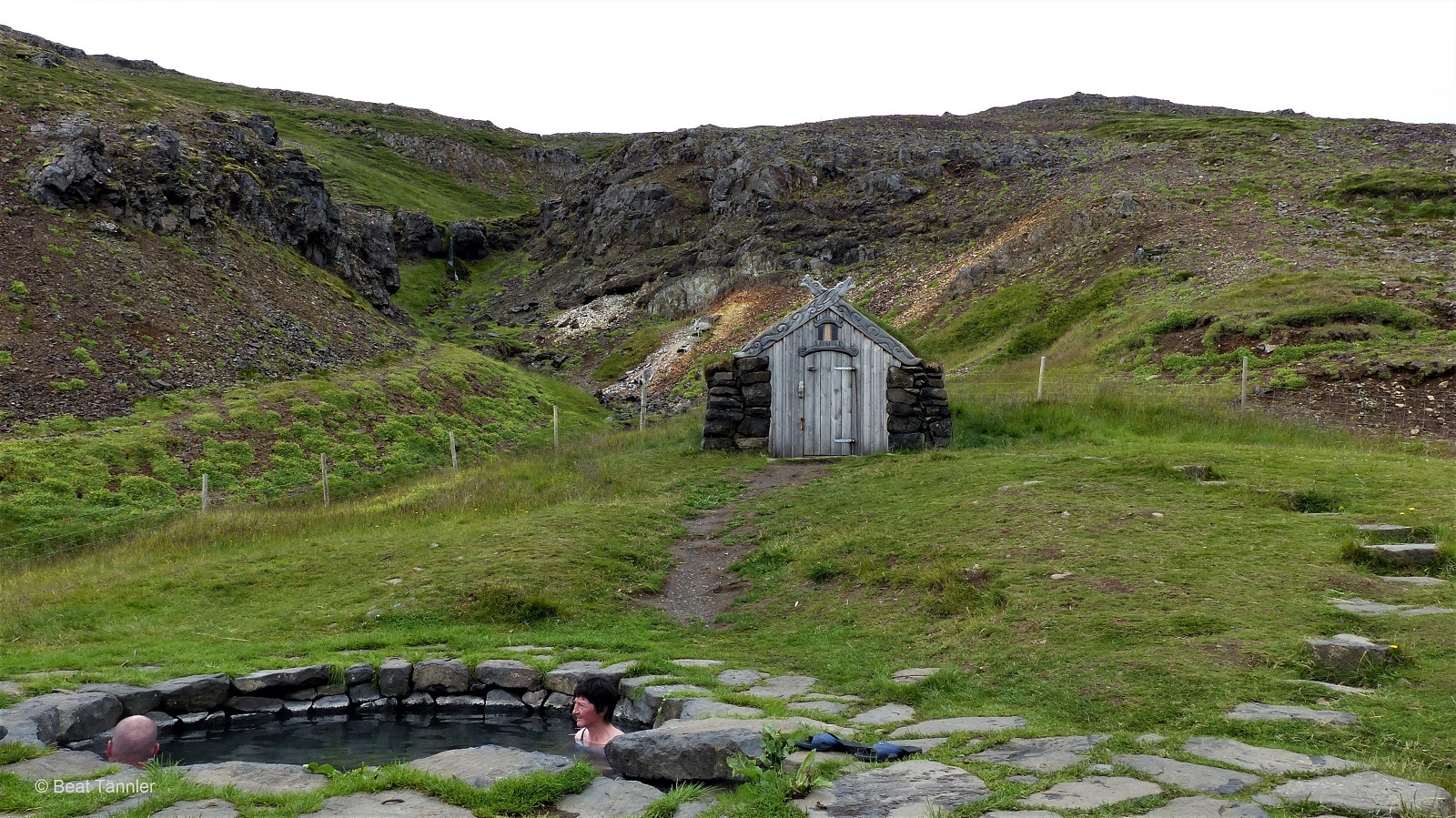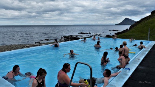 Der Sturm hat etwas nachgelassen. Wir fahren nach Grundarsfjörður. Dort soll es eine 24 Std.-Wäscherei geben. Die kleine Hütte, in der die Waschmaschine und der Tumbler stehen, ist aber sehr schmuddelig. Eine Maschine waschen und trocknen würde zudem auf etwa ISK 1600 (ca. Sfr. 16.– ) zu stehen kommen!