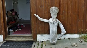 Wir stellen unseren NOBIS deshalb gegenüber in die Einfahrt zu einer Wiese. Annette bleibt im Wagen, damit sie wegfahren kann, falls es nötig sein sollte und Beat macht sich auf den Weg zur Attraktion.