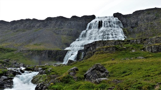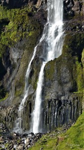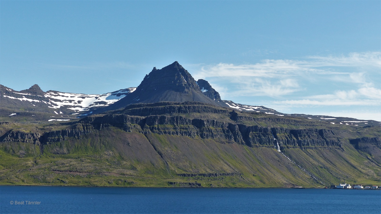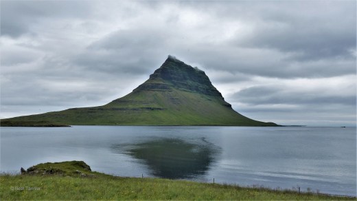 Kurz nach Grundarfjörður ragt ein besonders markanter Berg auf, der Kirkjufell. Er hat die Form eines steilen Kirchendaches, was ihm seinen Namen gab.