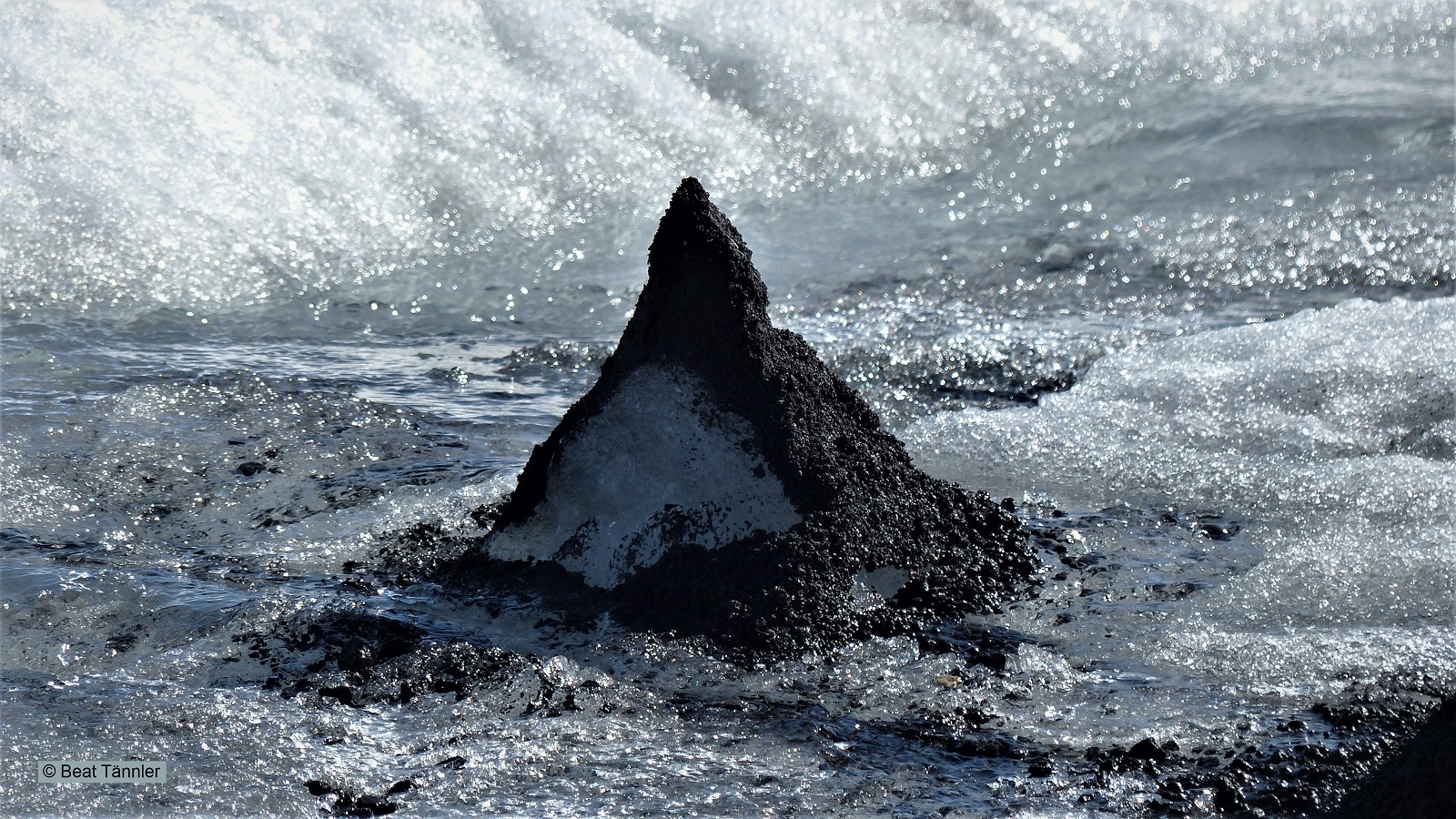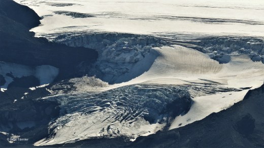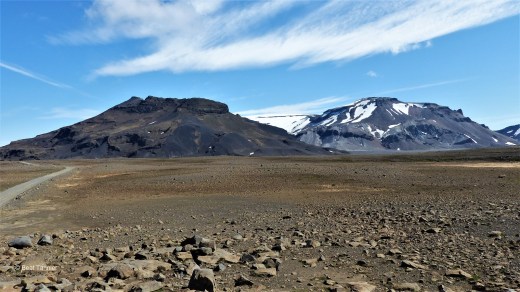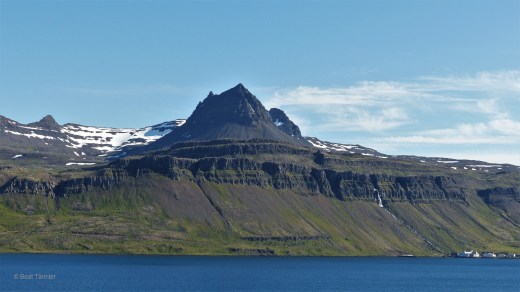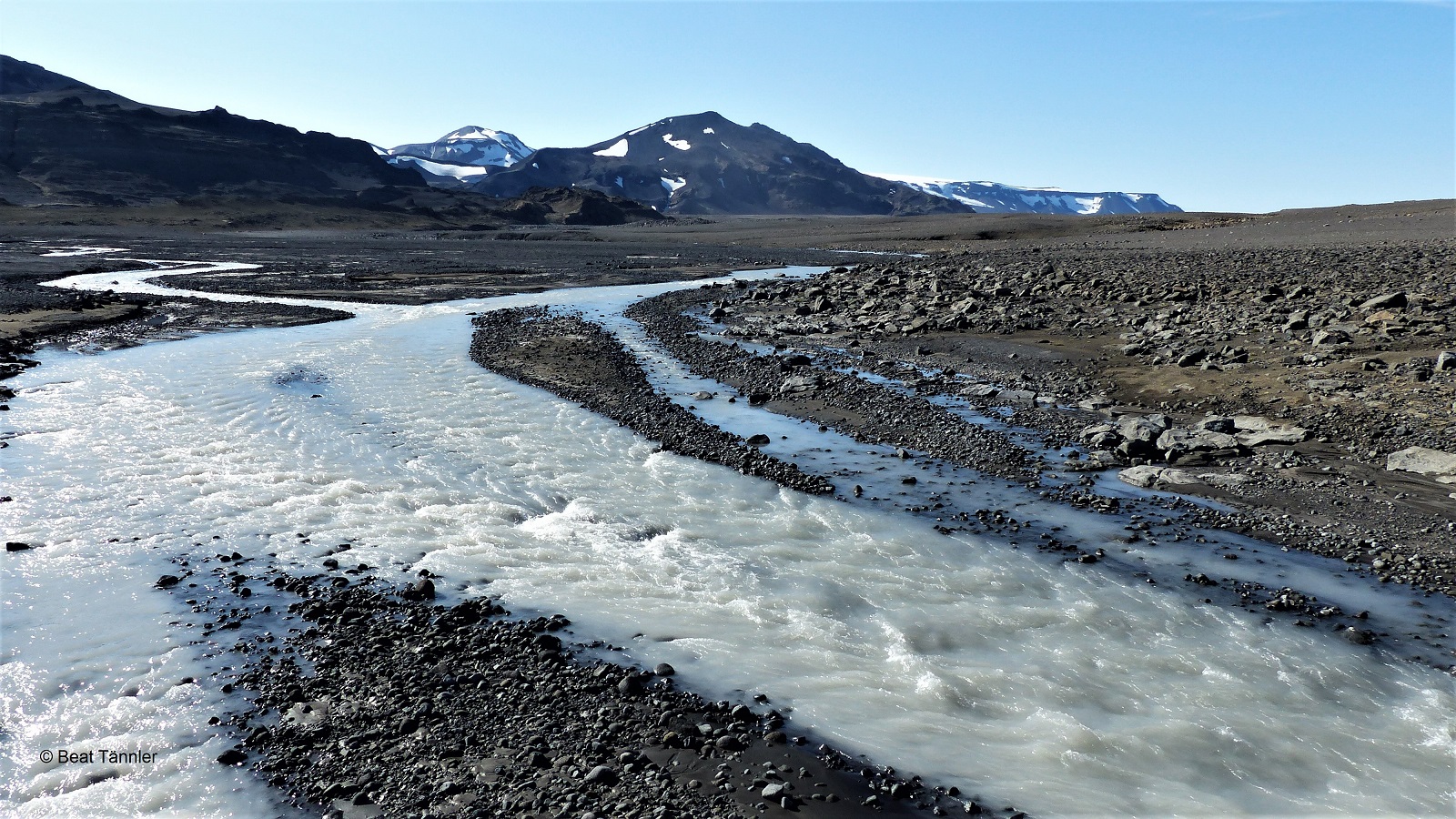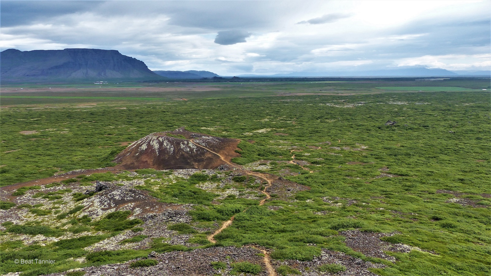 Von Süden her sieht man eindrücklich, dass der Snæfellsjökull ein Vulkan ist. Die erstarrten Lavaströme lassen die Kraft erahnen, die auch heute noch im Erdinnern schlummert.