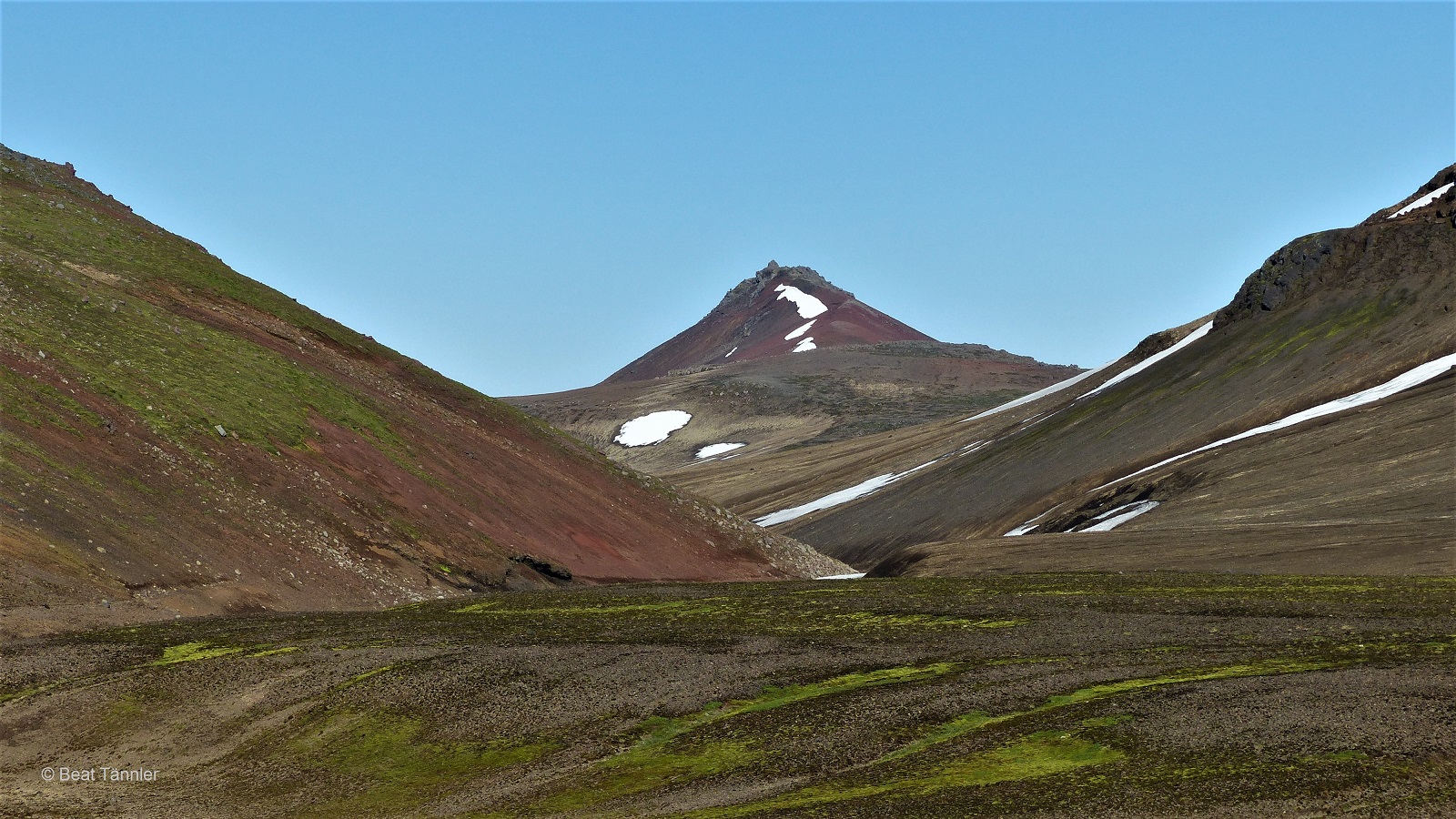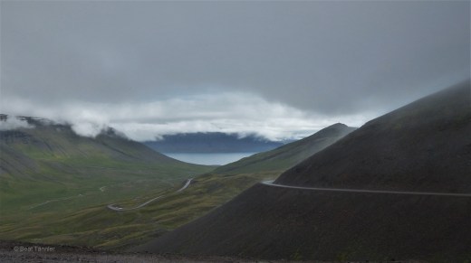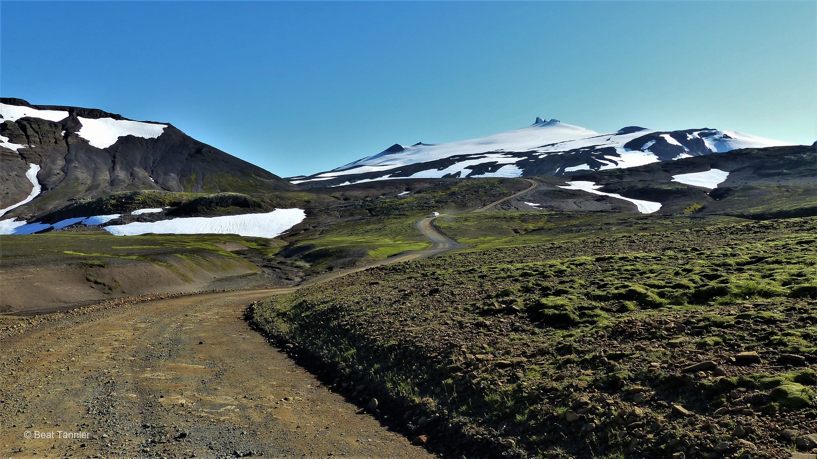 Wir wollen ans Ende der Halbinsel Snæfellsnes fahren. Beat setzt sich mit dem Vorschlag durch, den längeren Weg zu nehmen und nochmals über den Pass zu fahren. Die Landschaft dort oben muss einzigartig sein.
