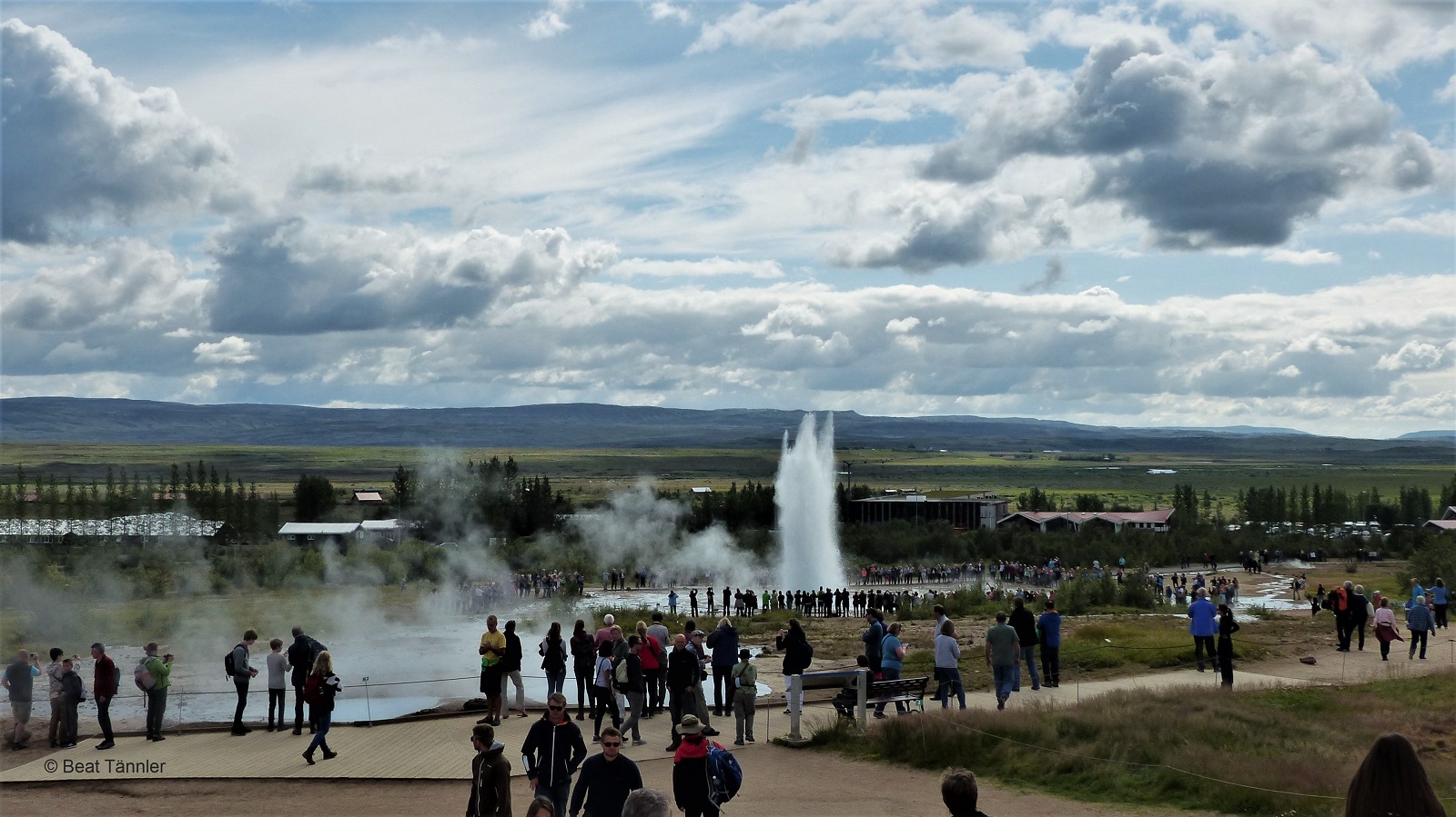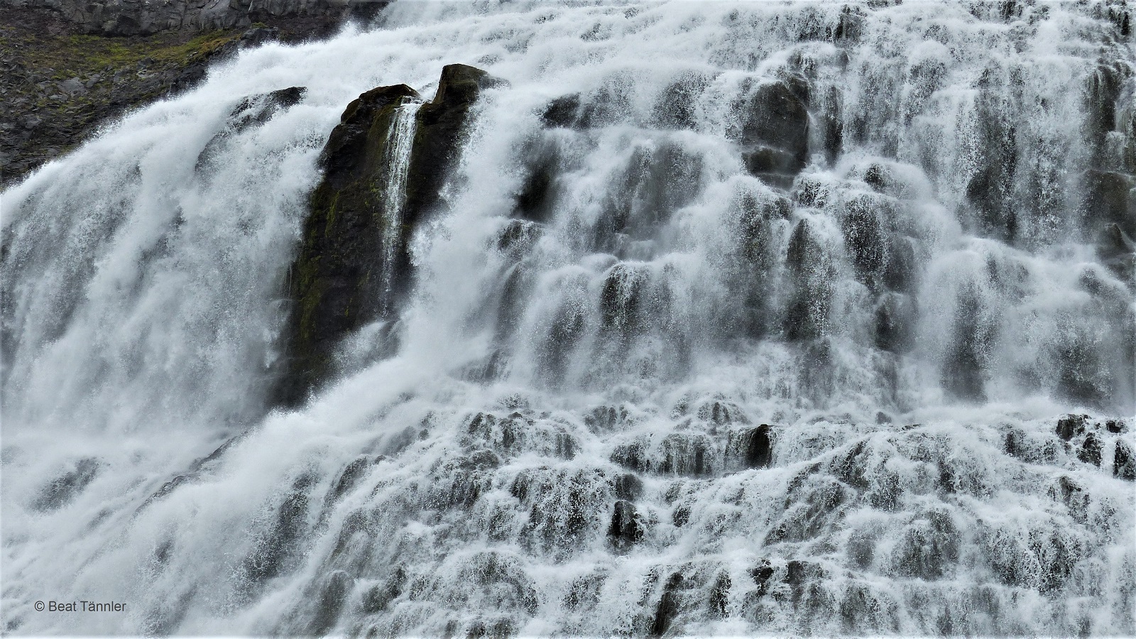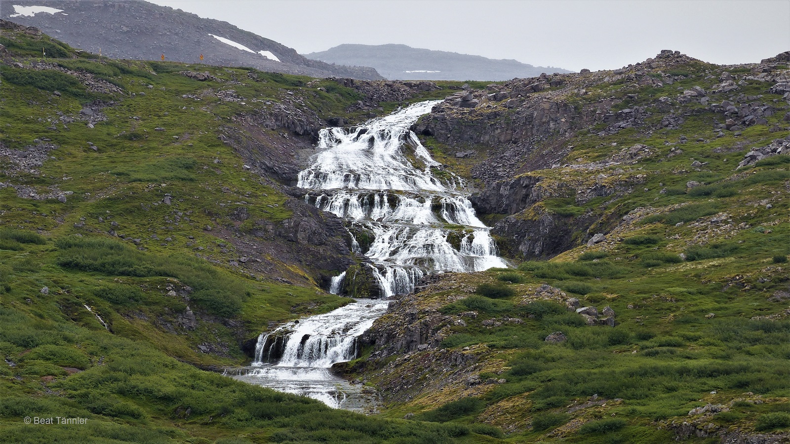 Auf der anderen Strassenseite liegt der Kirkjufellsfoss. Dieser scheint bei Touristen sehr beliebt zu sein. Der kleine Parkplatz quillt aus allen Nähten.