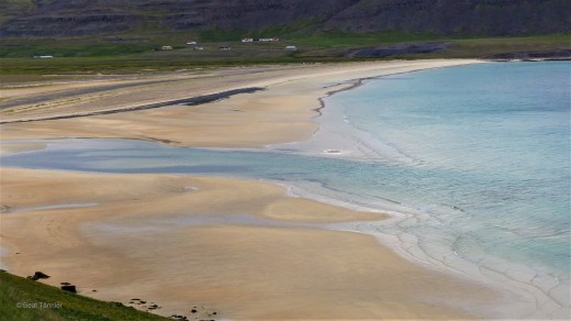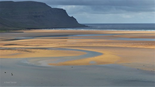 Kurz vor Öndverðarnes, der äussersten Spitze der Halbinsel Snæfellsnes steigen wir an den Strand der Bucht Skarðsvík hinunter. Es ist Niedrigwasser und was wir da sehen, ist atemberaubend!