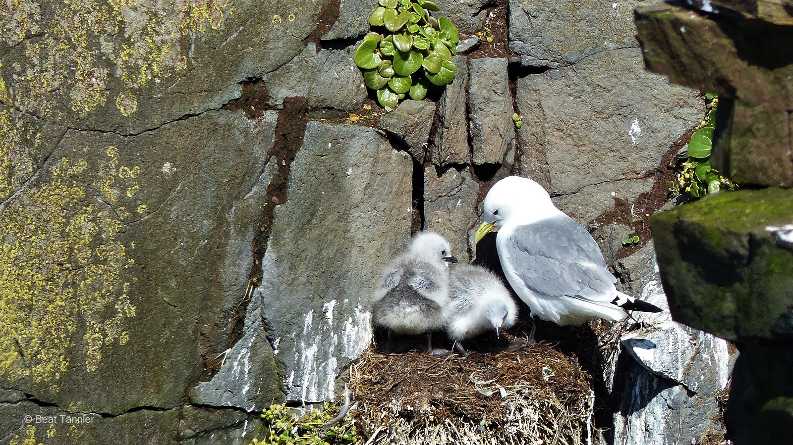 Vor Hellisandur laufen uns im wahrsten Sinne des Wortes junge Küstenseeschwalben über den Weg. Wir stoppen und werden Zeuge, wie das Futter aus der Luft angeflogen wird.