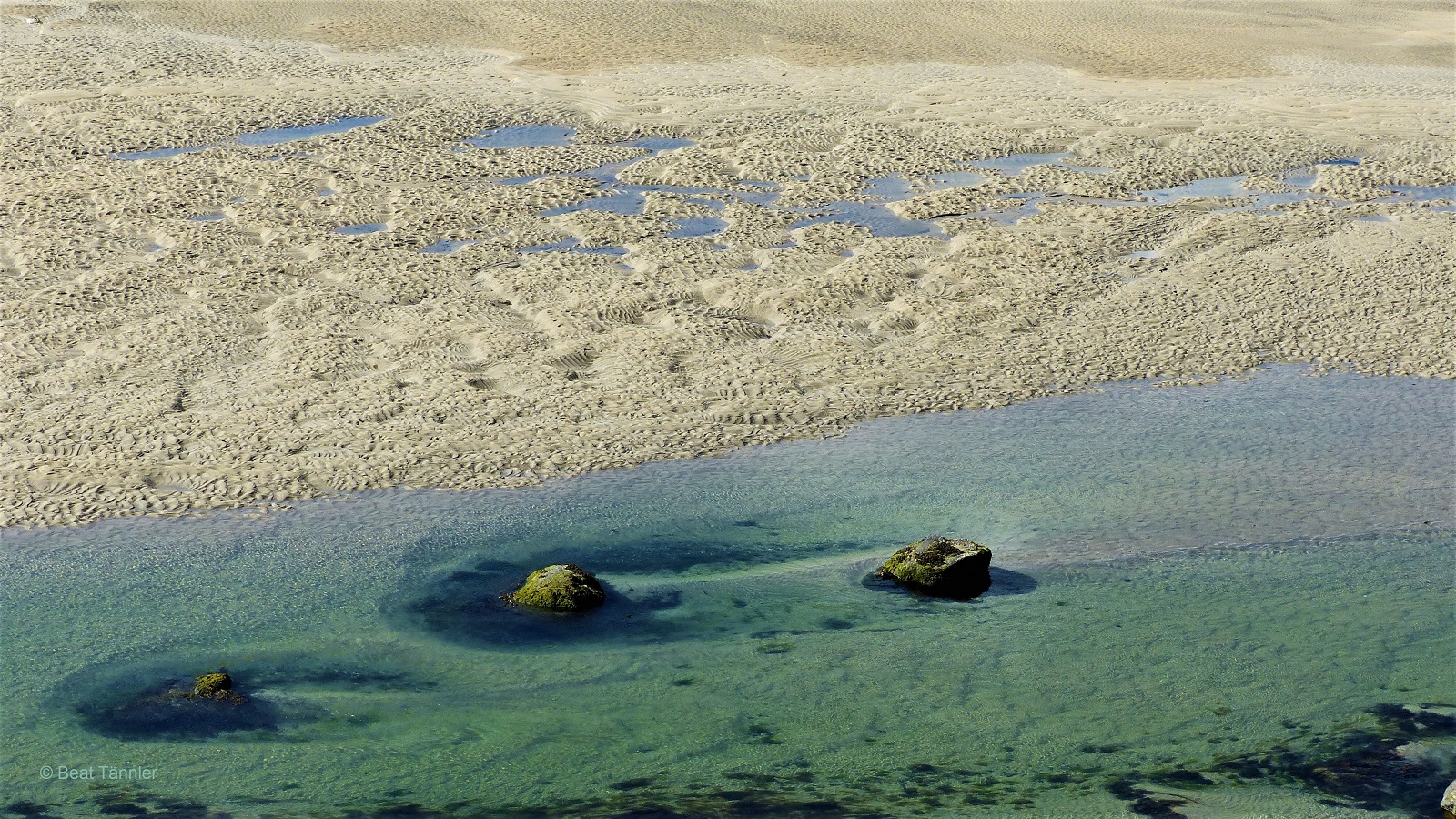 Die Felsen und Steine, die Spuren des Wassers im Sand, die Pflanzen und Tiere, die darauf warten, dass das Meer wieder zurückkehrt… unglaublich schön.