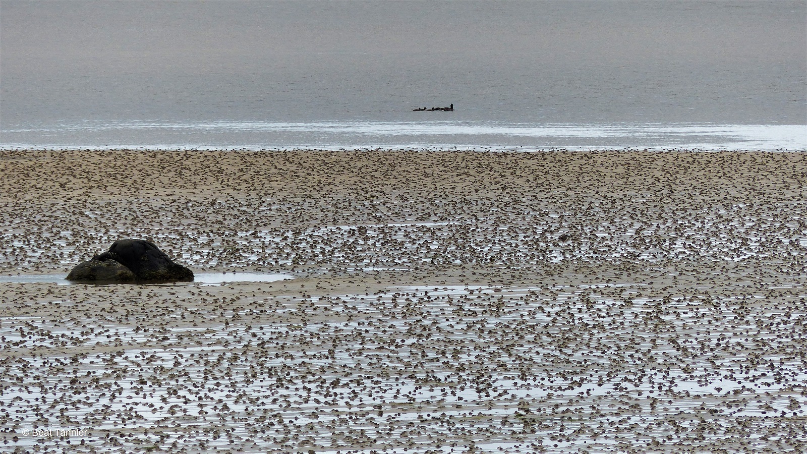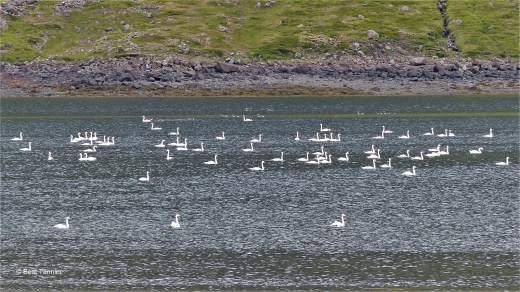 Kurz vor Stykkishólmur entdecken wir im Alftafjörður eine grosse Schar Singschwäne.
