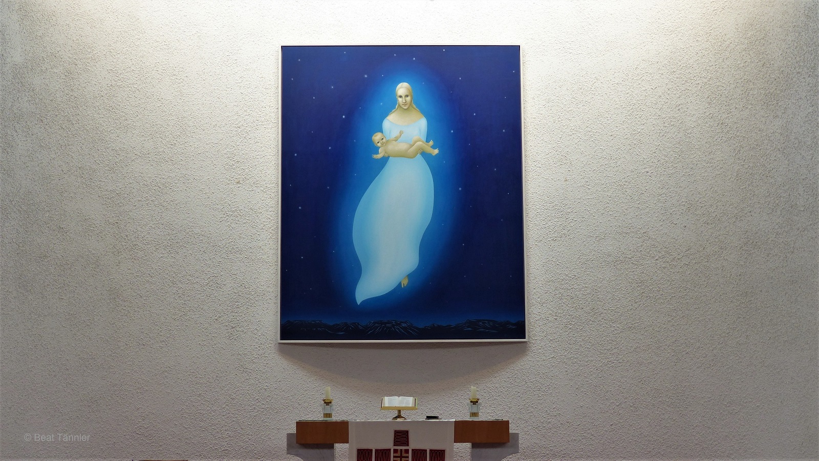 Das Altarbild der isländischen Malerin Kristín Gunnlaugsdóttir ist ganz in Blau gehalten.