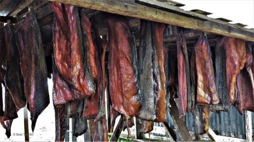 Haie sind Knorpelfische und haben keine Gräten. Ihre Haut ist sehr rau und wurde früher als Sandpapier verwendet. Jährlich werden hier 60-80 Tiere, die als Beifang in Netzen landeten, verarbeitet.