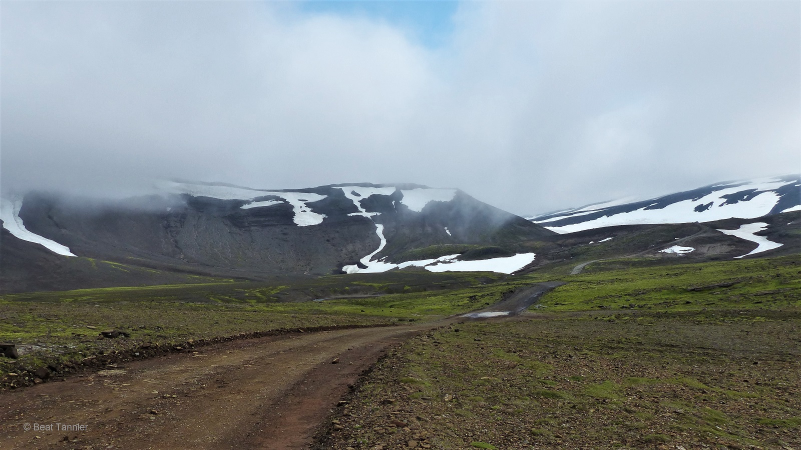 Danach fahren wir über die Passstrasse am Snæfellsjökull vorbei. Leider hängen im oberen Teil dichte Wolken, man sieht zum Teil nur wenige Meter weit.