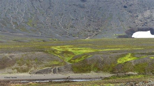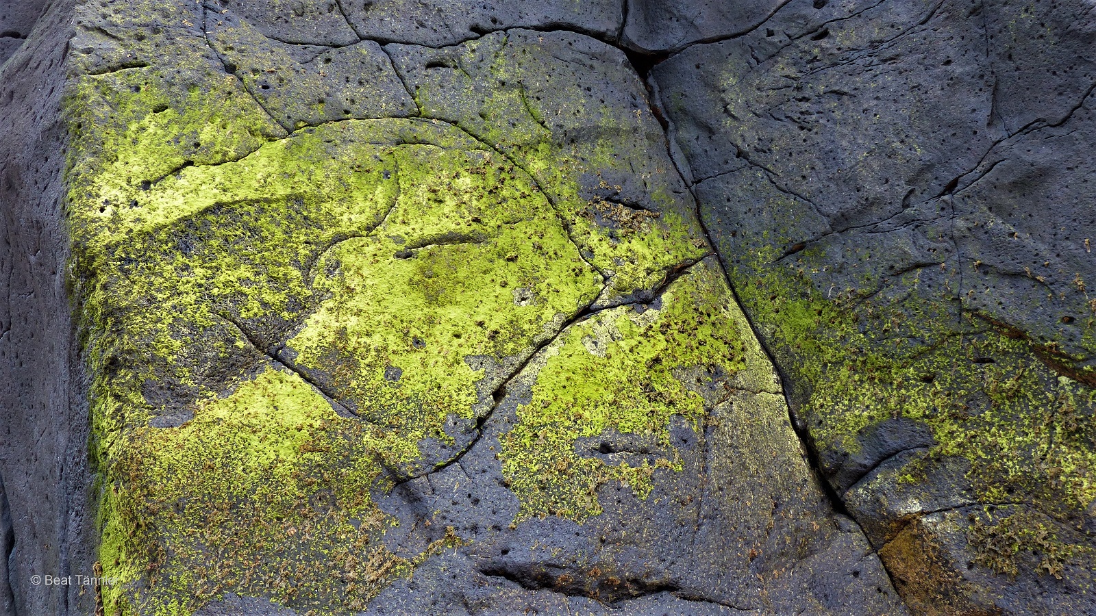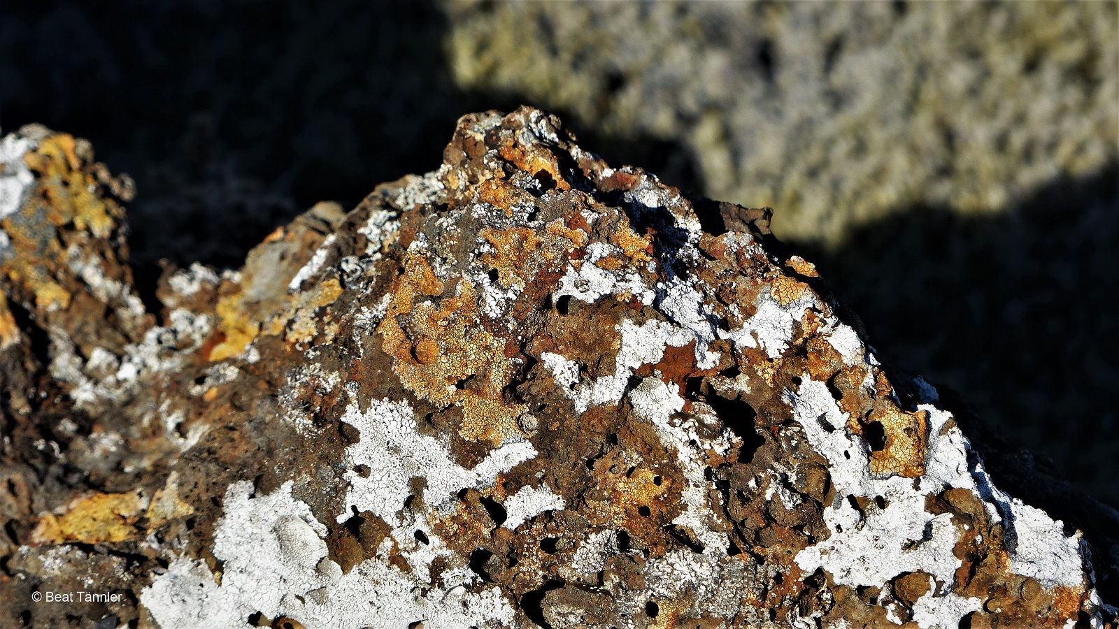 Einmal mehr staunen wir über die leuchtenden Moose, die sich in dieser garstigen Umwelt zu behaupten wissen.