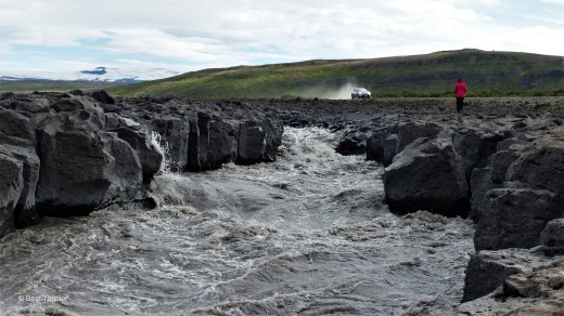 Wenige Kilometer nach Búdardalur führt die Schotterstrasse über eine Brücke und wir erhaschen einen kurzen Blick auf den Bach Skrauma, der sich durch eine felsige Schlucht zwängt.