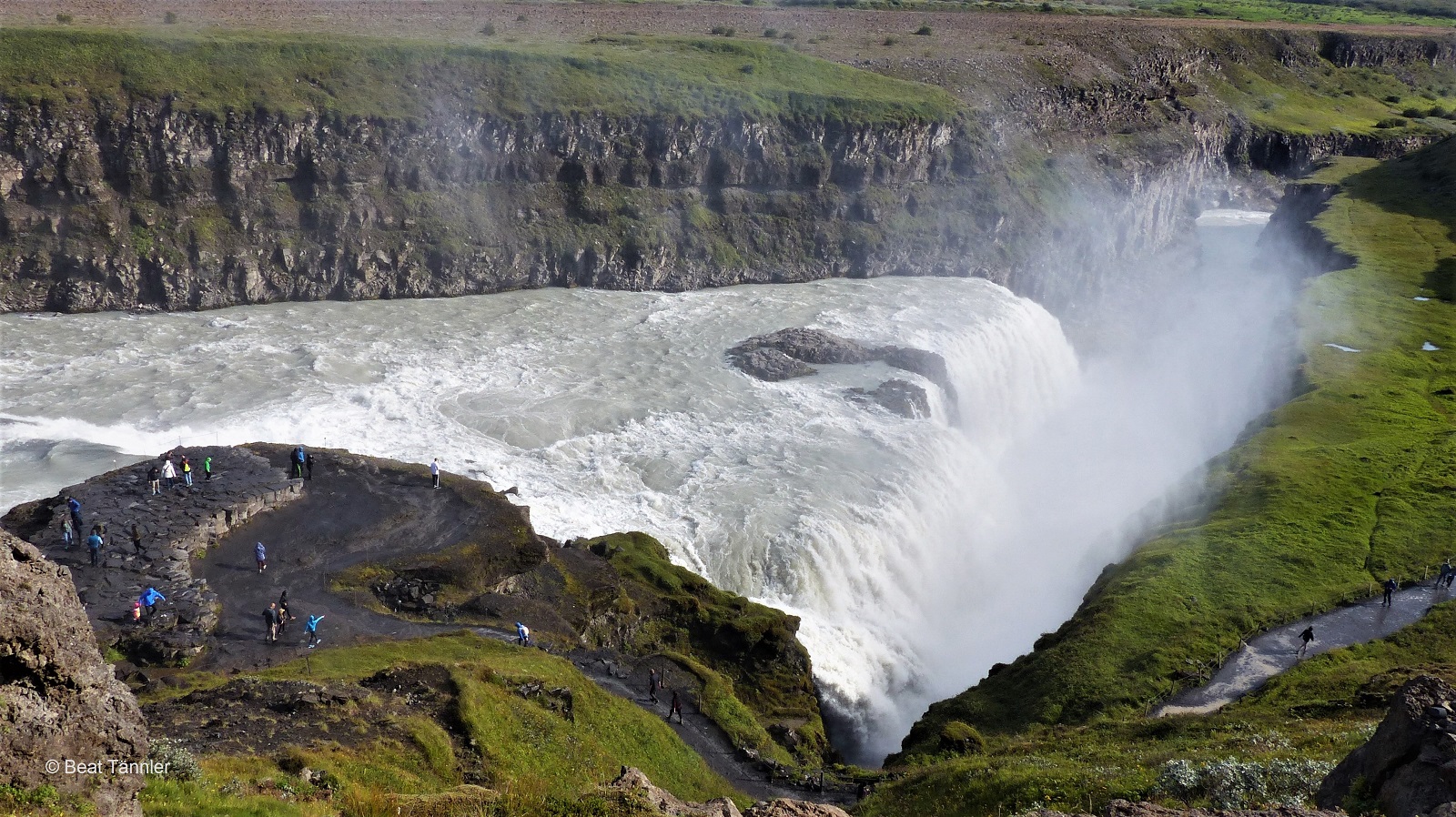 Nicht alle begnügen sich mit einem konventionellen Bild vom Wasserfall. Einer kniet sich gar hin, um ein ganz besonderes Foto zu schiessen und ermöglicht so Beat ein ganz besonderes Foto zu schiessen. 😉