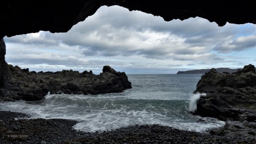 Vom Leuchtturm aus gehen wir nach Þúfa, dann ein Stück zurück und weiter nach Hundsvík. Auf dem Rückweg steigen wir in die „Osterhöhle“ (Paskahellir) hinunter.