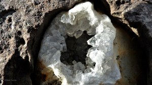 Ausserhalb der Höhle findet man kleine aufgebrochene Kristallkammern.