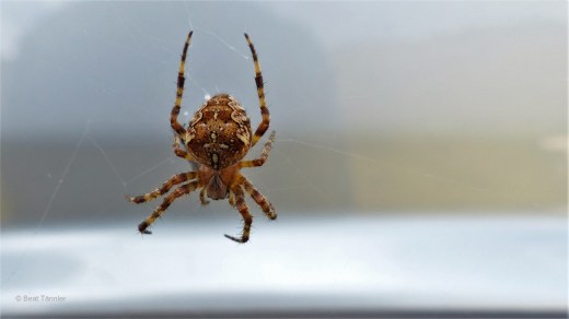 Genüsslich saugt sie die dicke Fliege aus, die sich in ihrem Netz verfangen hat.