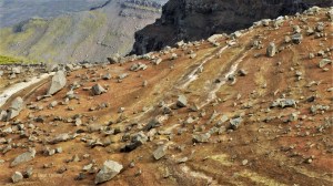 Strasse im steilen Geröllfeld