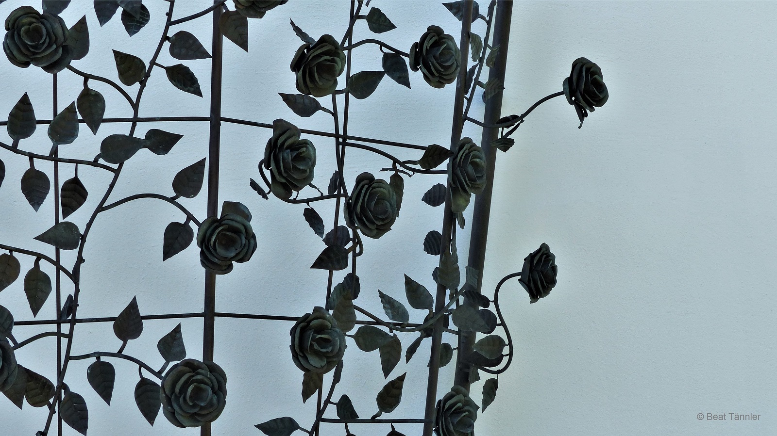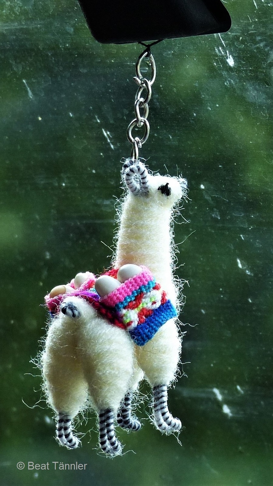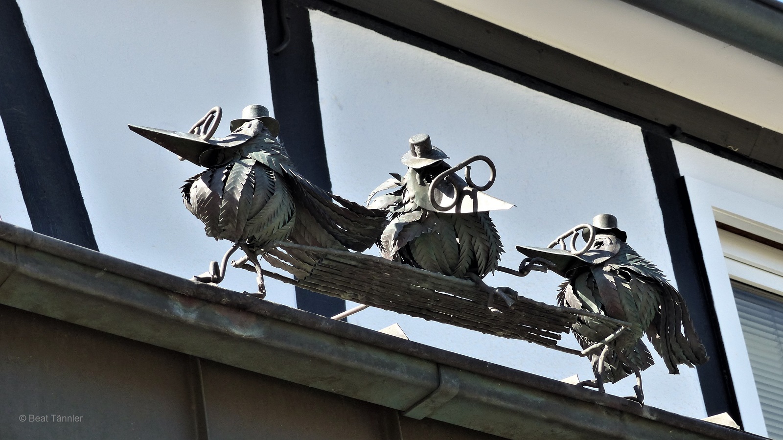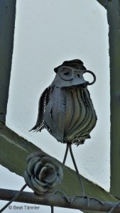 Hast du die zwei Puppen auf der Bank links vom Blumentrog entdeckt? Sie haben sich gut versteckt.