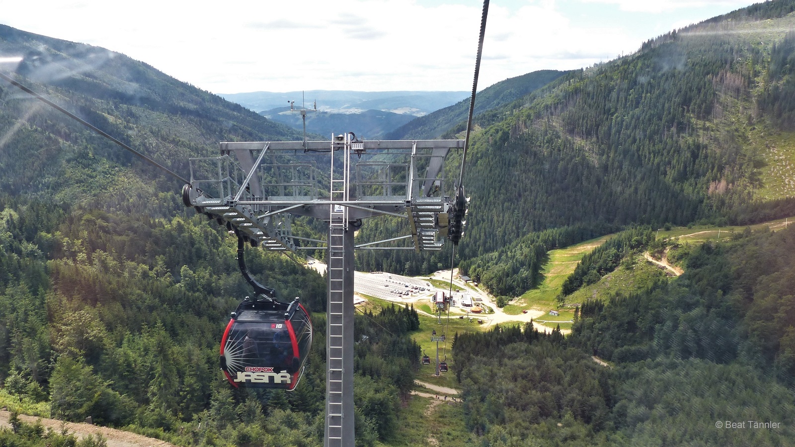 An der Talstation Krupová registrieren wir uns für den „GoPass“ des Tatra-Gebiets. Damit bekommen wir die Fahrkarten günstiger. Die nette Dame erklärt uns, dass wir für € 20.– bzw. € 16.– (ab 60 Jahren gilt man hier als Senior und erhält Vergünstigungen 🙂 ) ein Retour-Ticket lösen könnten. Dieses berechtigt zu einer Fahrt auf den Chopok-Gipfel, dann auf der Nordseite hinunter nach Demänovská Dolina und wieder zurück.