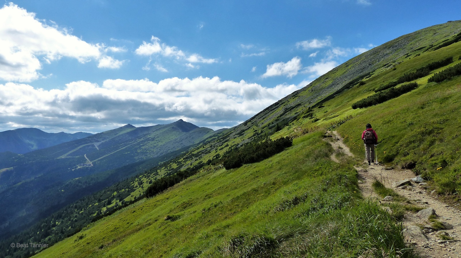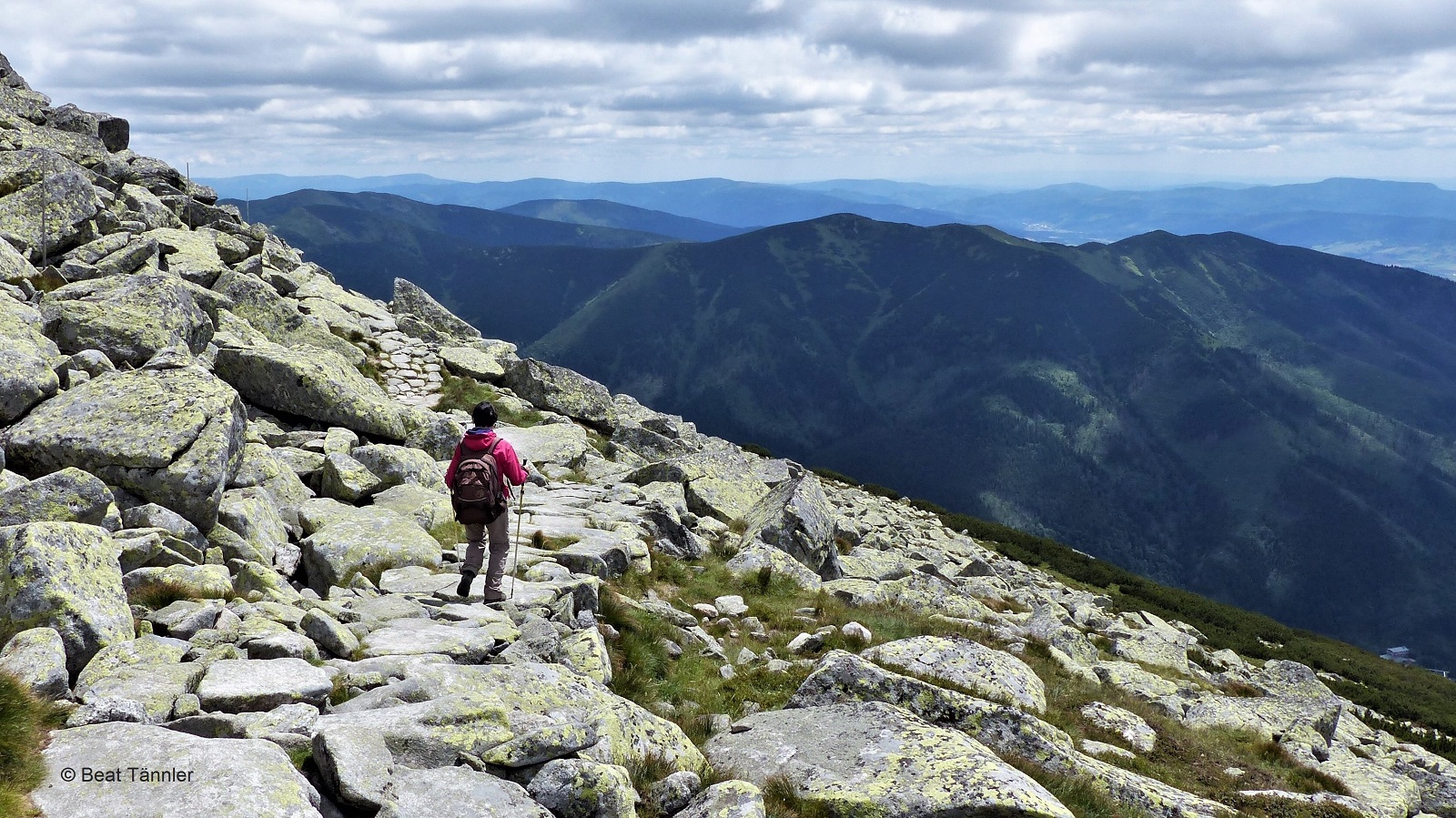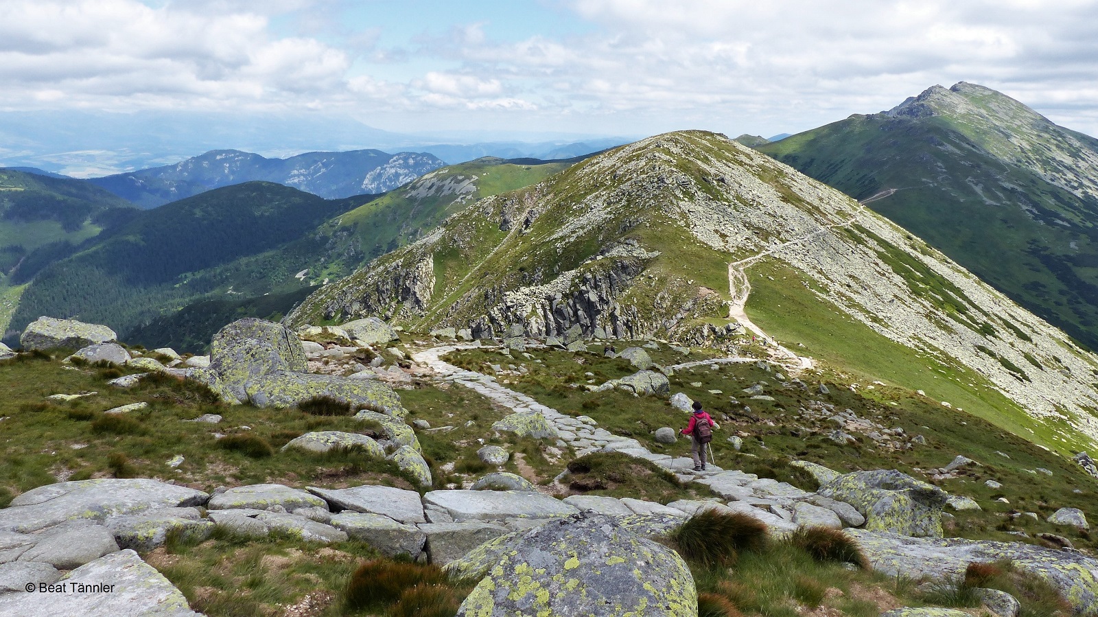 Nach einer ausgiebigen Pause wandern wir zurück zum Grat und weiter zur Chata Stefánika.