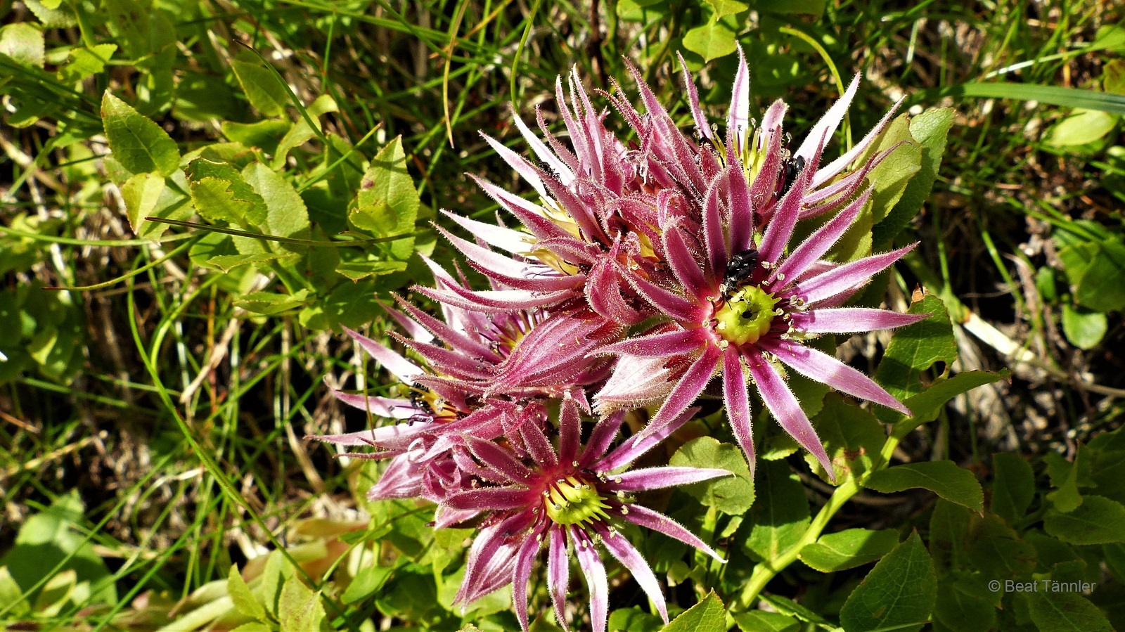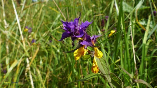In den Wiesen im Tal entdecken wir einige Pflanzen mit goldgelben Blüten und leuchtendblauen Blättern an den Spitzen.
