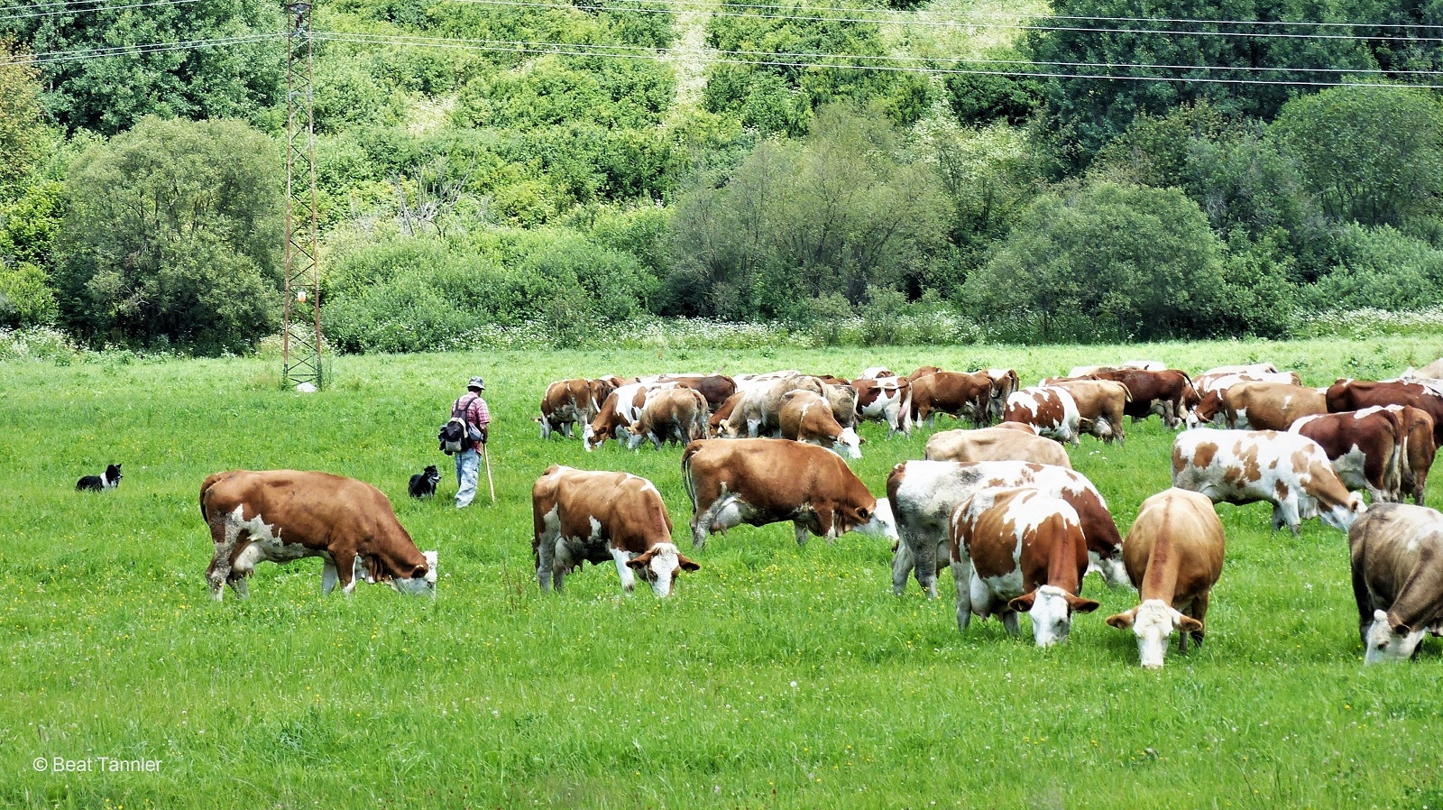 Auf dem Weg nach Dedinky sehen wir eine grosse Kuhherde, die von einem Hirten und seinen Border Collies gehütet wird. Eine seltene Idylle in unserer hektischen Zeit.
