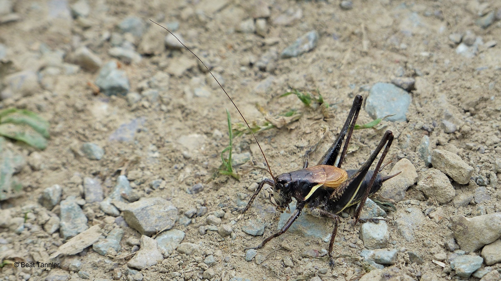 Auch eine Grille scheint ihren kurzen Flügeln nach zu schliessen mehr zu wandern denn zu fliegen.