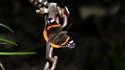 Ein Schmetterling sitzt anmutig auf einer der Ketten, an denen sich unsichere Wanderer in gefährlichen Passagen festhalten können. Er scheint über unsere mühsame Kraxelei zu lächeln.