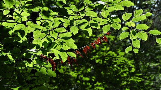 Über uns leuchten die Buchenblätter in der Sonne wie grüne Lämpchen.
