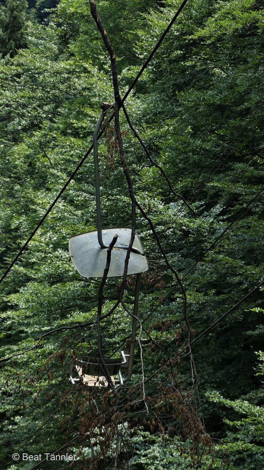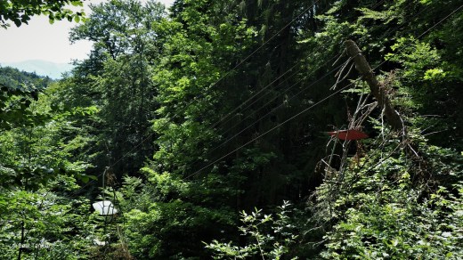 Oben angekommen wandern wir über den Berg Geravy zurück nach Dedinky. Die Sesselbahn, die einst hier heraufführte, wird von der Natur zurückerobert.
