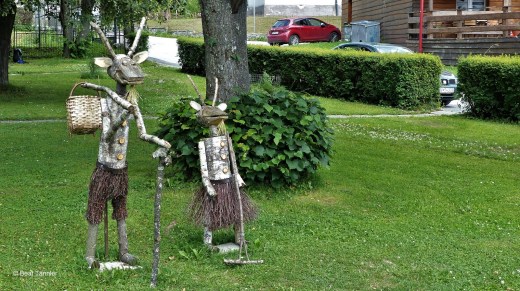 Unten im kleinen Dorfpark von Dedinky werden wir von zwei Birkenziegen begrüsst.