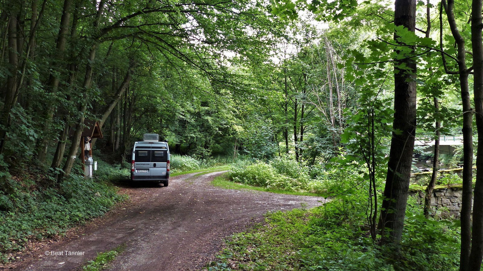 In einem Wald bei Leiden finden wir einen friedlichen Übernachtungsplatz unter der Schirmherrschaft von Johannes Nepomuk. Dachten wir…..