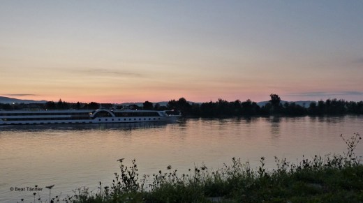Lastkähne und Kreuzfahrtschiffe ziehen gemächlich auf der Donau an unserem NOBIS vorbei.