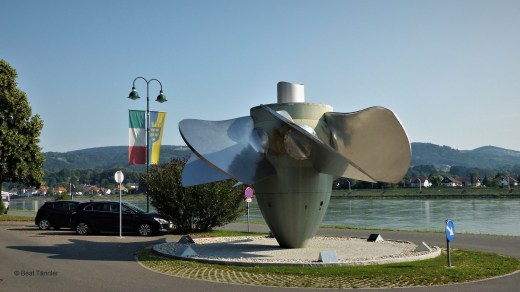 Vor der Weiterreise spazieren wir durch das Städtchen und staunen über eine riesige Kaplan-Turbine.