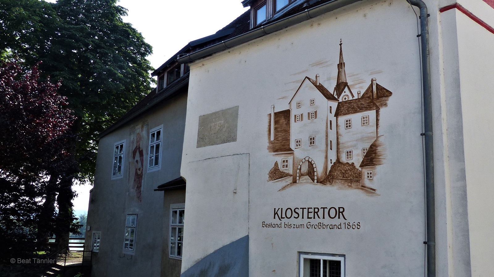 Wandgemälde zeigen, wie die Stadt vor dem Grossbrand von 1868 ausgesehen hat.