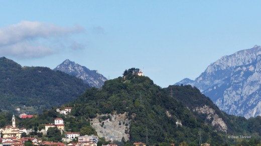 Getreu dem Motto: Mit dem Auto, ohne Bahn verlasse ich nach Chiasso die Autobahn und fahre auf Nebenstrassen weiter. Das dauert zwar länger, dafür sieht man was von der Gegend. Das heisst zunächst vor allem von der Stadt Como, in der das Navi wieder zickt und mich im Feierabendverkehr endlos Kreise drehen lässt.