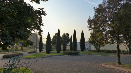 Bei San Giorgio di Nogaro staune ich: Sogar die Starkstrommasten sind hier im Herbst bunt. 😉