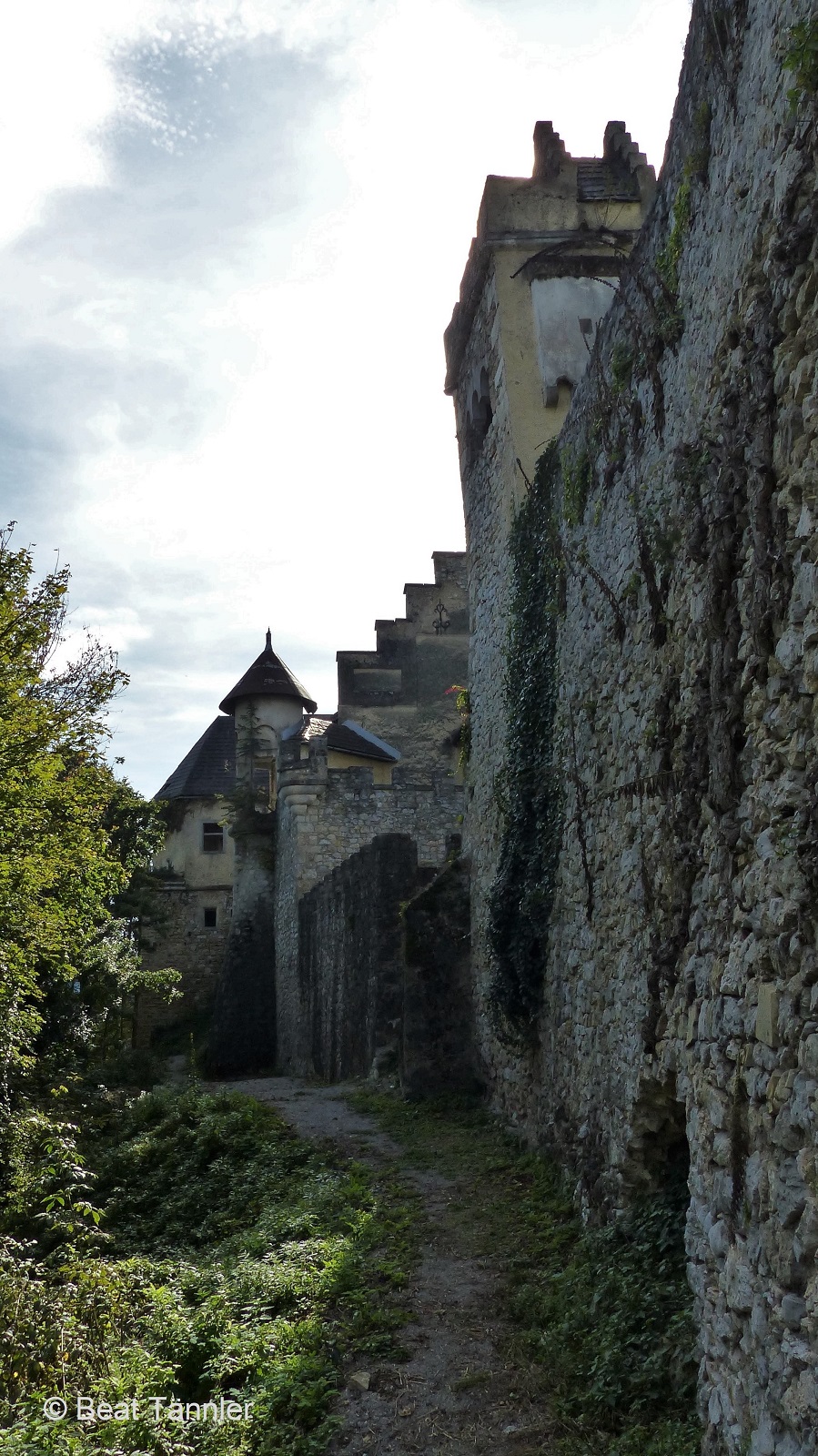 Beat fotografiert die Rosen vor der Ruine.