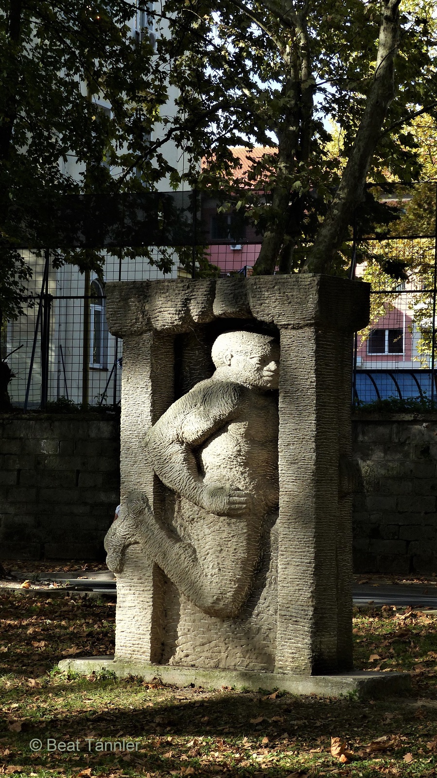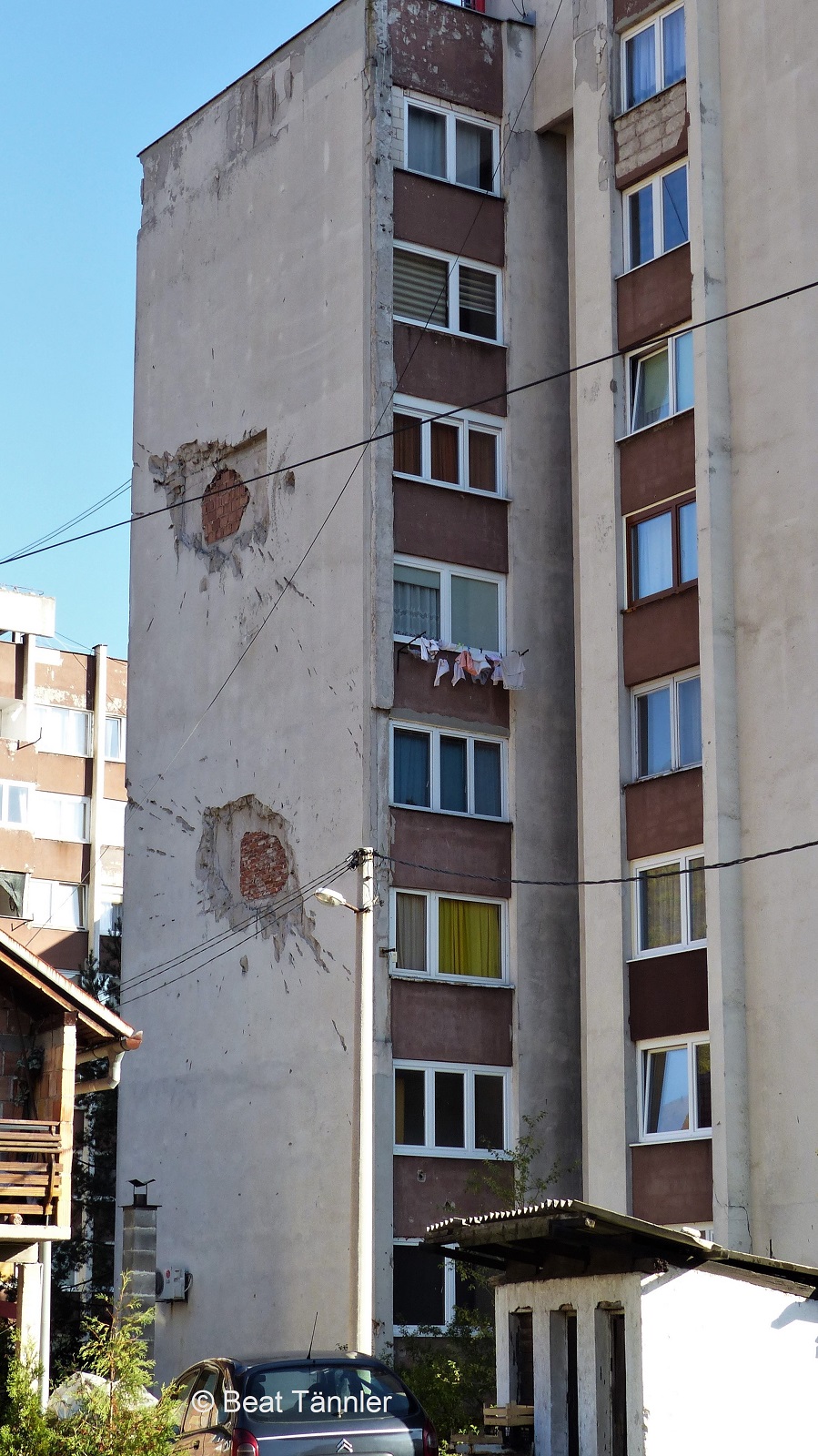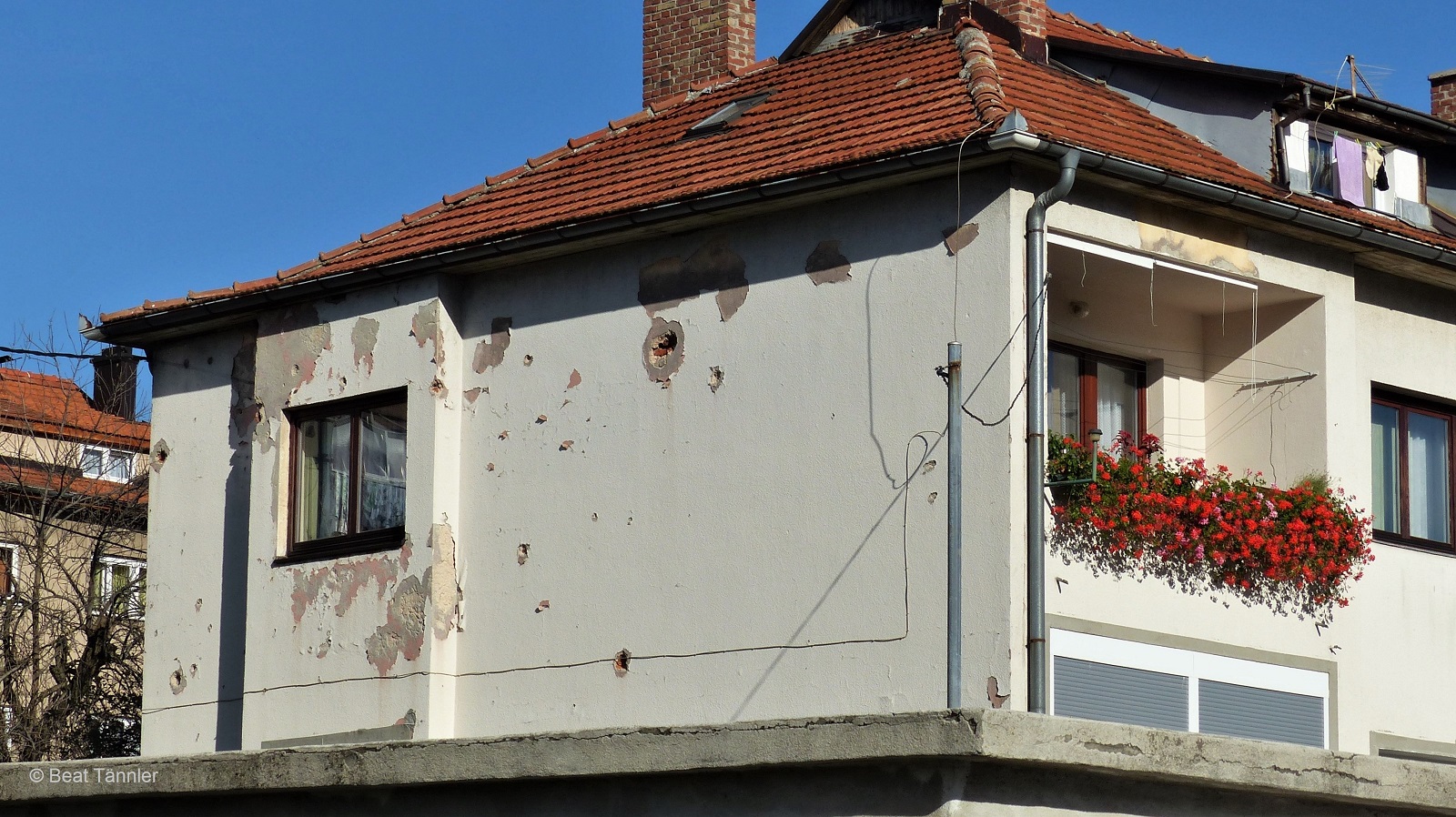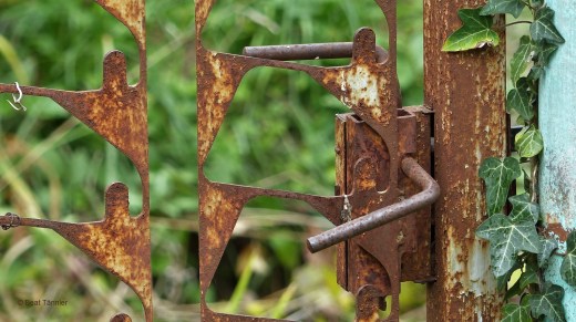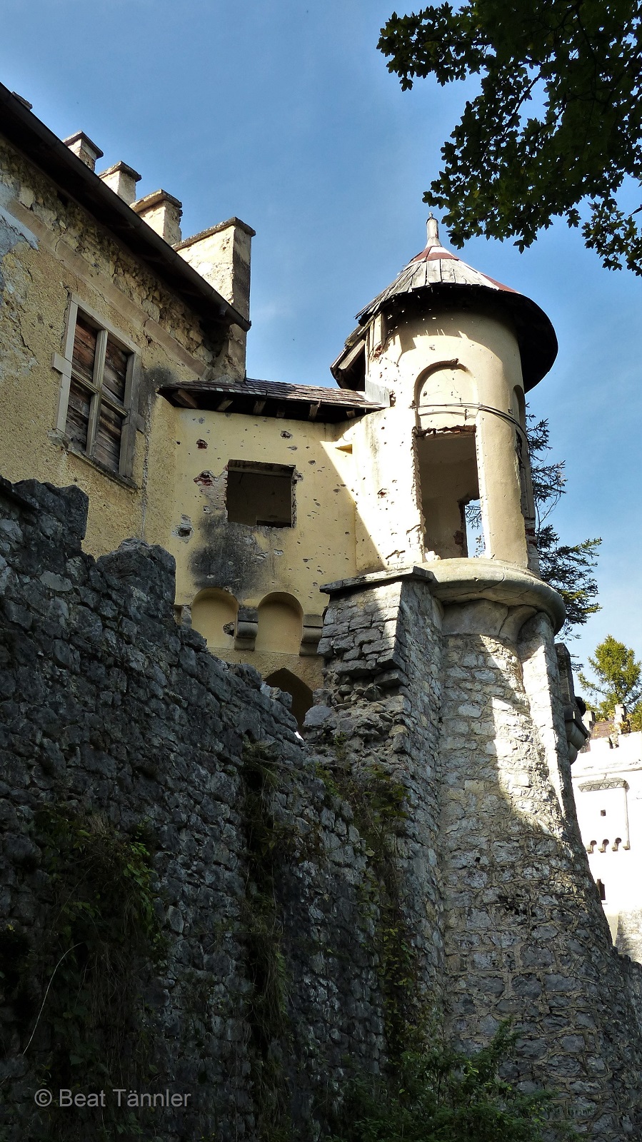 Gleich daneben steht ein im Krieg zerstörtes Haus. Das schmucke rostige Gartentor erzählt von besseren Zeiten.