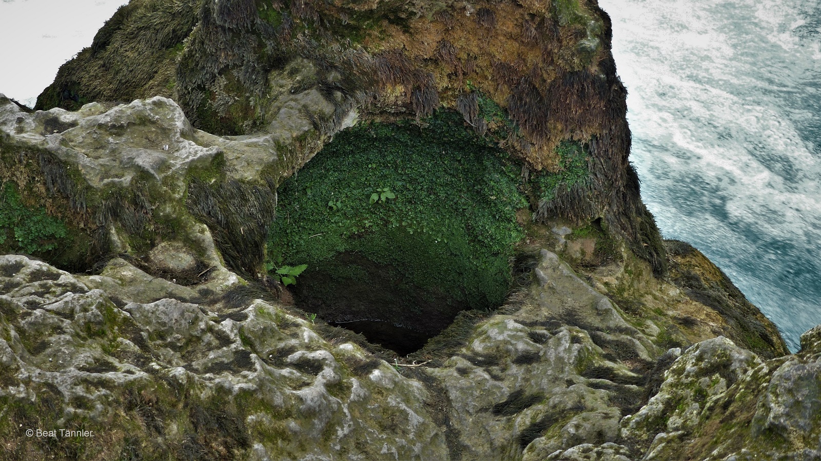 Im Innern ist der Fels mit Sinter überzogen.
