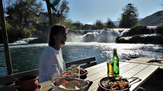 Kurz bevor wir wieder anlegen erzählt der nette Kapitän, dass er eigentlich LKW-Fahrer sei. Dort verdiene er aber so wenig, dass er zwischendurch mit dem Boot Touristen auf der Una herumfahre. Natürlich sorgt er sich um die Kosten für die Ausbildung seiner Kinder und natürlich ist seine Frau Diabetikerin und benötigt teure Medikamente.