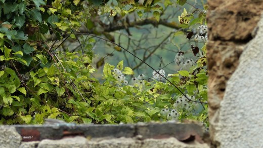 Die flauschigen Samen der Waldrebe grüssen über die eingestürzte Mauer.
