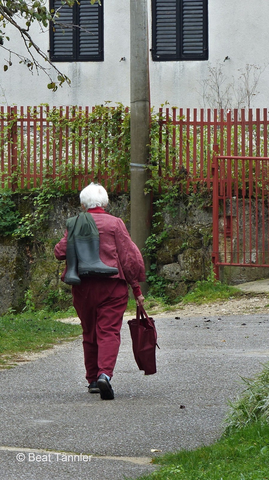 Da wir nicht kaufwillig sind und uns vor allem kaum verständigen können, zieht sie bald von dannen. Wohin sie wohl mit ihren Hochwasserstiefeln und der Einkaufstasche geht?