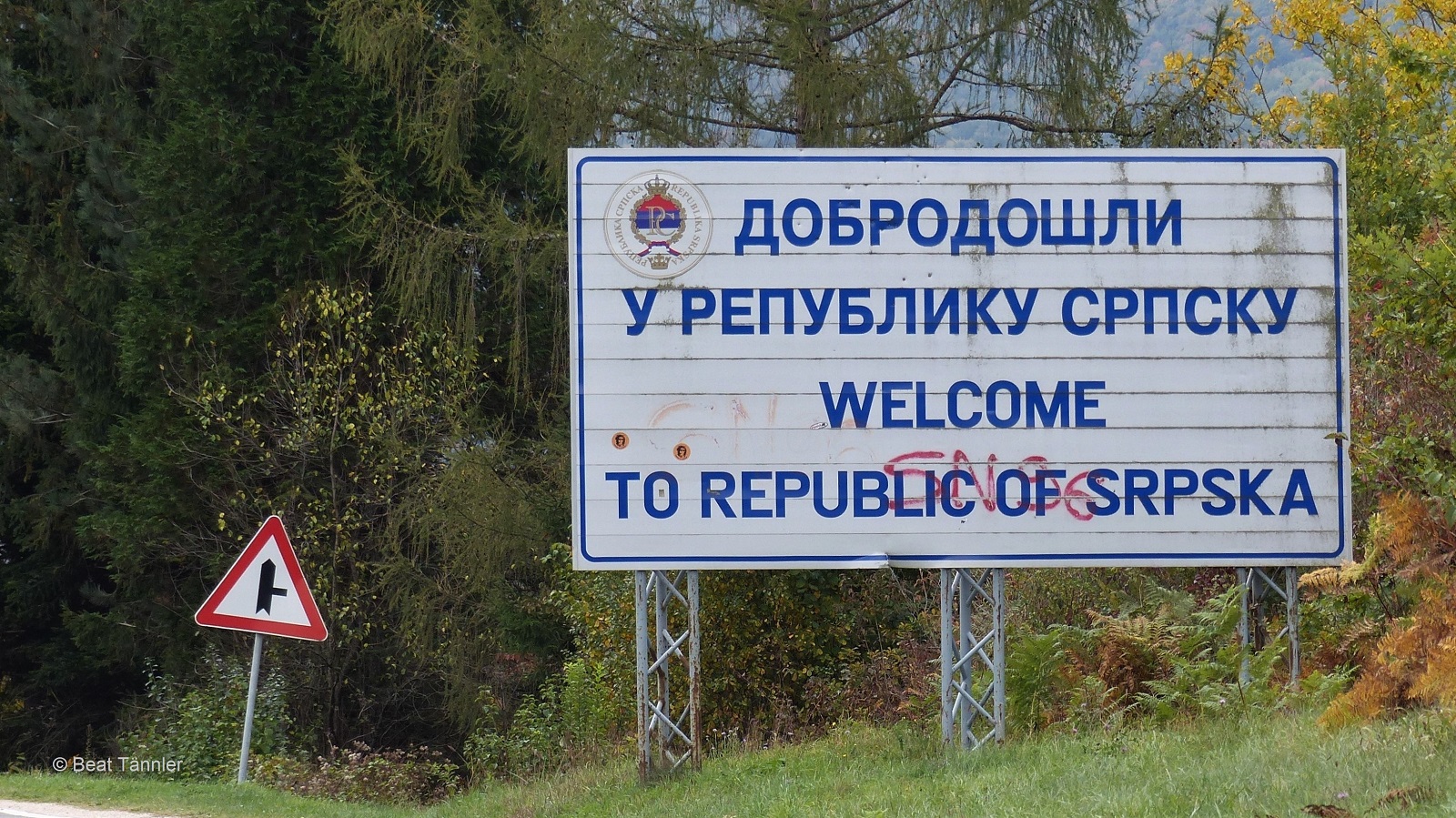 An jeder Strasse, die in die Republik Srpska führt, steht eine grosse Willkommens-Tafel.
