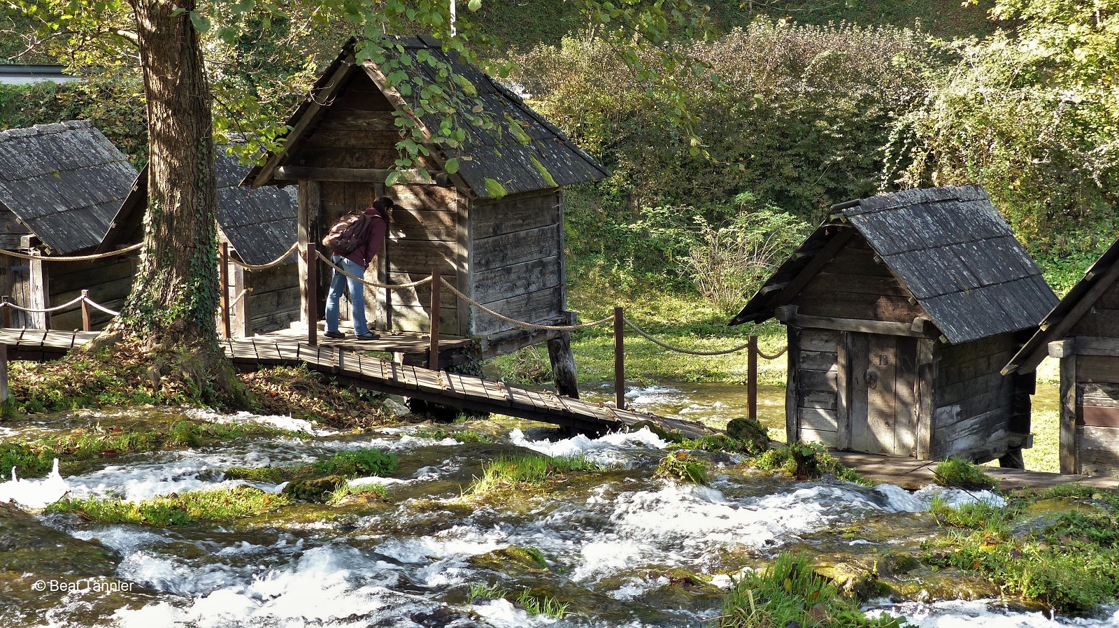 Nach etwa einer Stunde Marsch auf kleinen Strassen erreichen wir die Dvoslap (Doppelstromschnellen). Sie sind nicht sehr hoch, jedoch idyllisch gelegen.