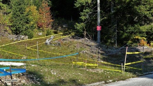 Danach folgen wir dem Weg weiter und gelangen zu einem neu angelegten Parkplatz. Dort endet die Strasse.