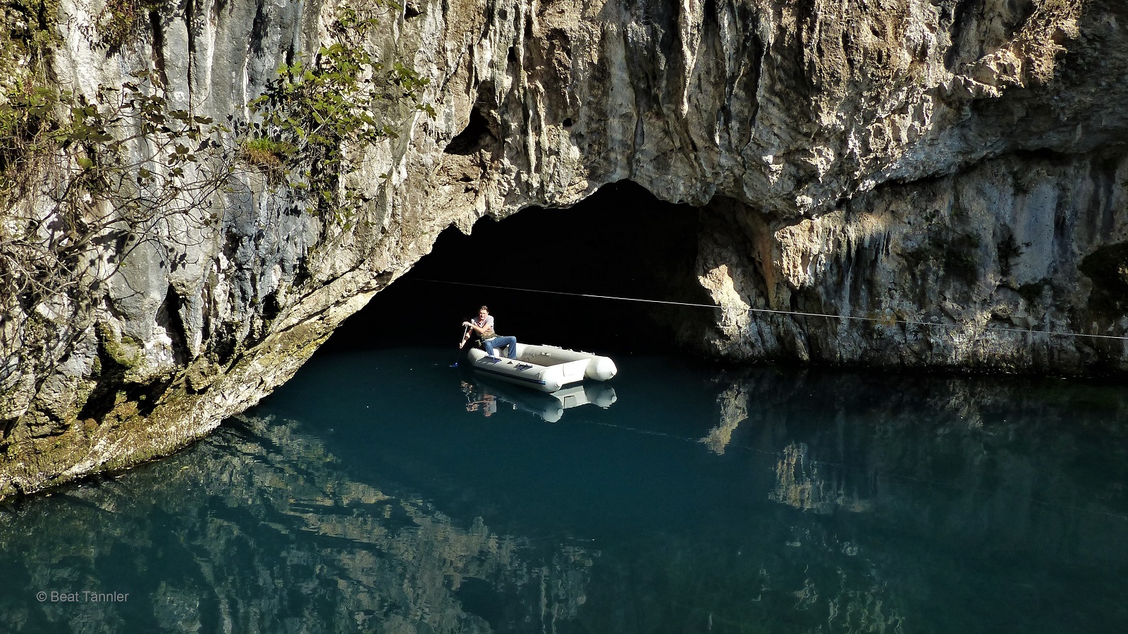 Die Buna fliesst bereits als stattlicher Fluss aus der Felsenhöhle, die man auf einem Schlauchboot besichtigen kann.