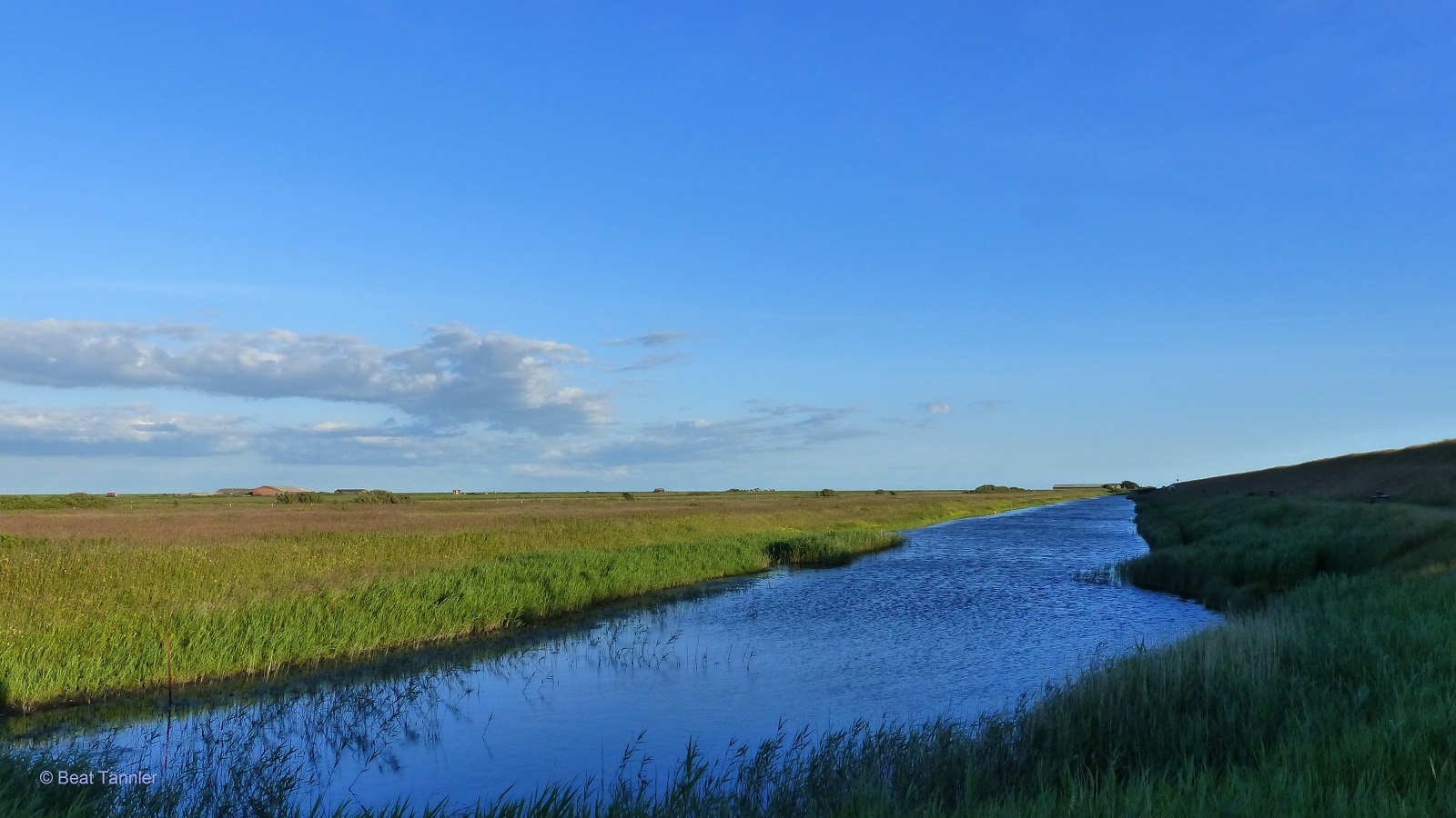 In Tøndern fanden wir einen Bauernhof, wo wir unser WoMo aufstellen durften. Die nette Bäuerin, die bereits auf dem Weg zum Start eines 10-km Laufes war (Für LA-Fans: sie verbesserte ihre persönliche Bestzeit auf unter 58 Minuten), erklärte uns, dass hier für 100 Kronen (rund Fr. 16.–) Dusche, Toilette, Wasser, Strom und WLAN inbegriffen seien. Wir erkundeten die Umgebung und entdeckten dieses schmucke mit Reet gedeckte Haus.