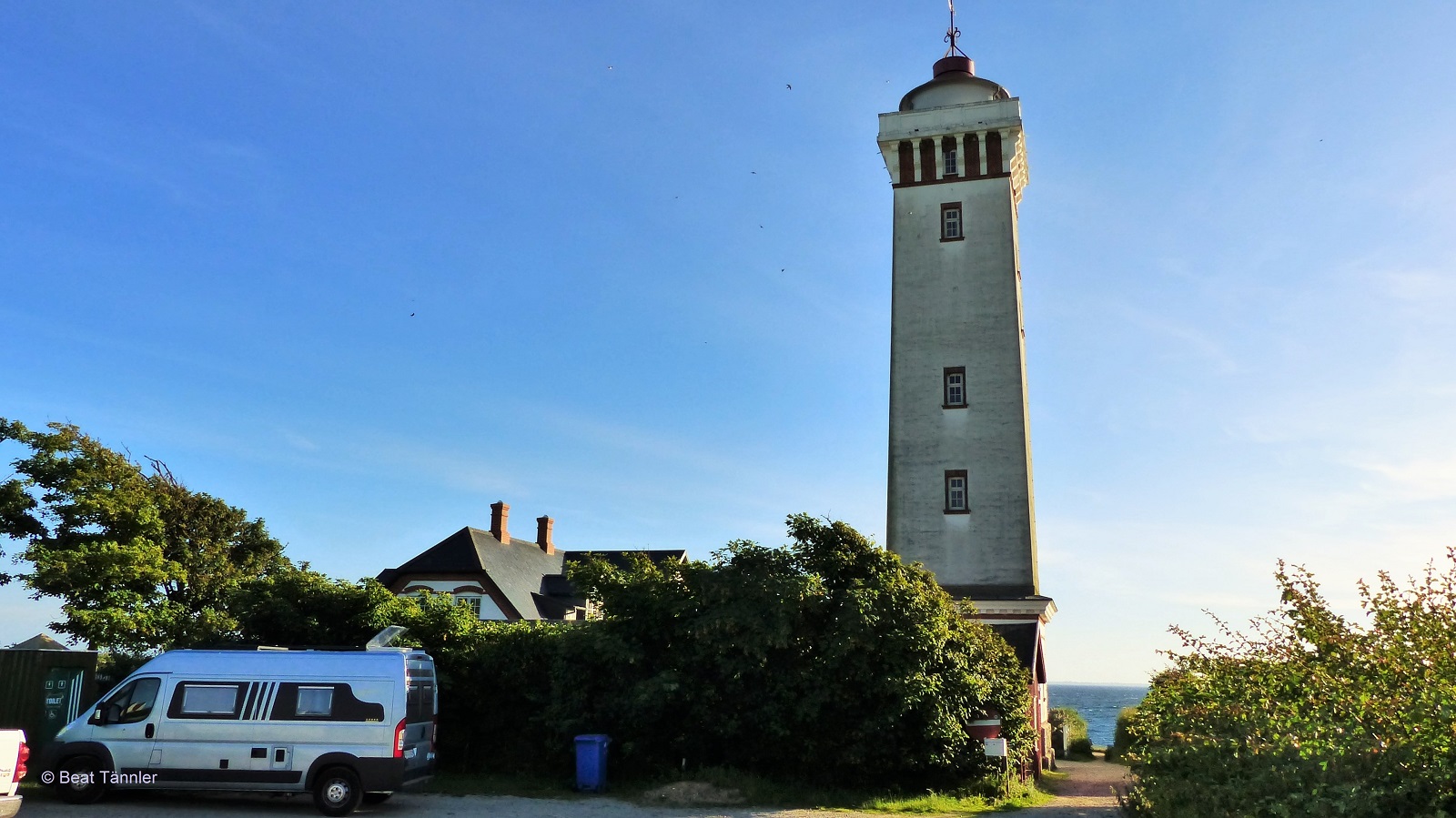 Die Strasse auf dieser Halbinsel (Helnæs) war selbst für unser kleines Womo recht eng. Vor dem Leuchtturm „Helnæs-Fyr“ fanden wir einen Parkplatz, mit Picknicktisch und Toilettenhäuschen. Der ideale Platz für uns.