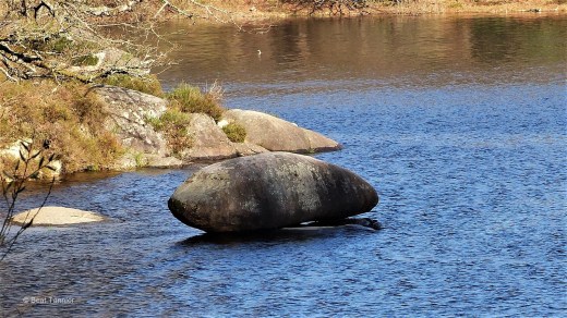 Plötzlich entdecken wir eine Robbe … gibt es ja gar nicht in Frankreich … also genauer hinschauen! … einen Stein in Robbenform, der nahe dem Ufer ein Sonnenbad nimmt.