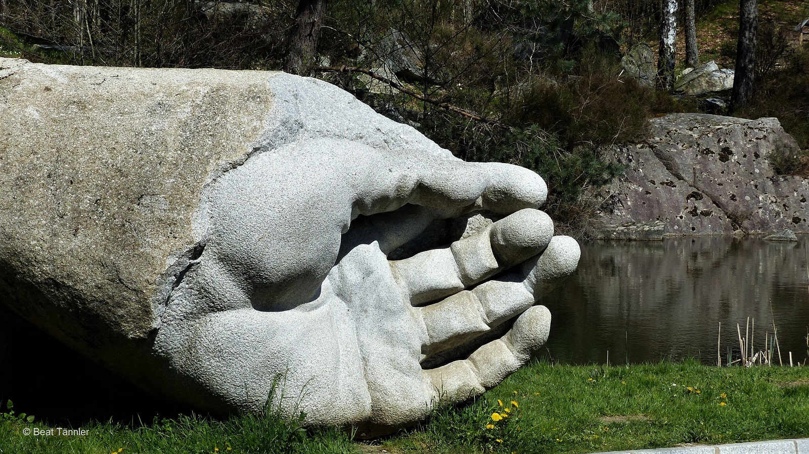 Ein Künstler hat eine Hand aus einem Felsen gehauen …